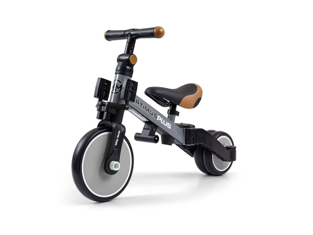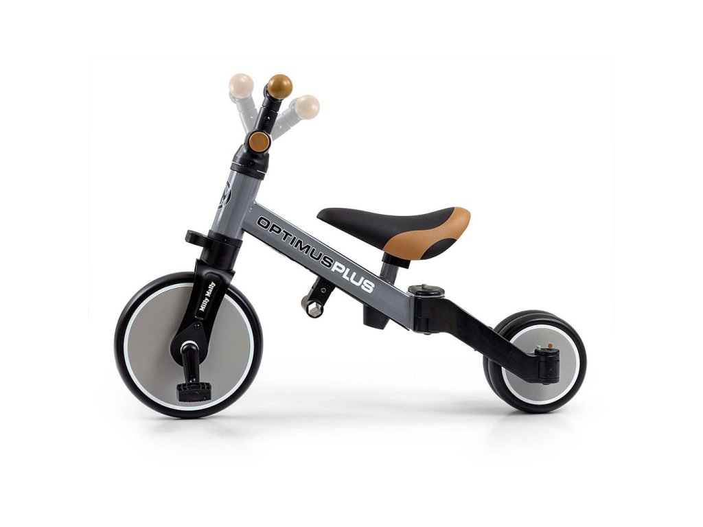 Kompaktná detská šliapacia trojkolka Milly Mally 2v1 Grande je ideálnym riešením pre deti, ktoré sa práve začínajú učiť jazdiť na bicykli a pritom ešte nie sú schopné udržať rovnováhu na dvoch kolesách. Je vyrobená z kvalitných a odolných materiálov a je ideálna na prechádzky. Veľkou výhodou tejto trojkolky je jednoduchá montáž pedálov a ľahké zloženie celej trojkolky. Penové kolesá výborne absorbujú nárázy, poskytujú dobrú priľnavosť, zaistia pohodlie počas jazdy a neunavia vášho malého pretekára. Dostatočná vzdialenosť kolies od seba poskytuje mimoriadnu stabilitu, bezpečnosť počas používania doma i vonku. Mäkké a nekĺzavé rukoväte zaistia pevné držanie riadidiel. Doraz nedovolí pretočenie riadidiel.