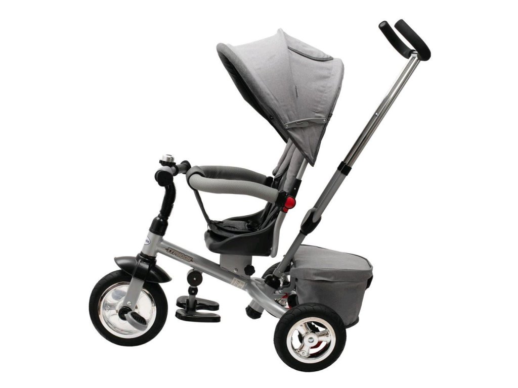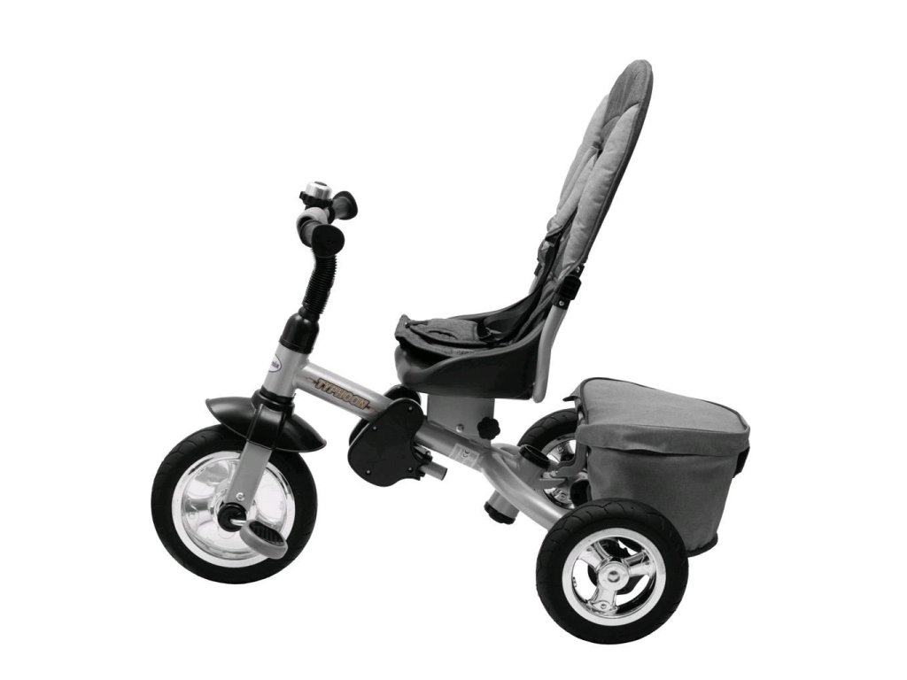 Detská šliapacia trojkolka Baby Mix TYPHOON je multifunkčný dopravný prostriedok a je typickým príkladom produktov GROW UP - rastie zároveň s dieťaťom. Trojkolku môže ovládať ako dieťa, tak aj rodič pomocou nastaviteľnej vodiacej tyče. Po odobratí vodiacej tyče, sklápacej striešky a opierok bude slúžiť ako klasická šliapacia trojkolka. Pevná oceľová konštrukcia zaistí dieťaťu bezpečnosť a zaručí jej používanie po mnoho rokov. Pohodlné a ergonomicky tvarované sedadlo je otočné o 360 stupňov, čo umožní dieťaťu cestovať v smere alebo proti smeru jazdy. O pohodlie a bezpečie počas jazdy sa stará odnímateľná hrazda, trojbodové bezpečnostné pásy, pohodlné odnímateľné stupačky alebo gumové kolesá, ktorá skvele absorbujú nerovnosti, poskytujú perfektnú priľnavosť a nevyžadujú hustenie. Pre uloženie hračiek alebo potrieb pre dieťa je tu praktický úložný košík.