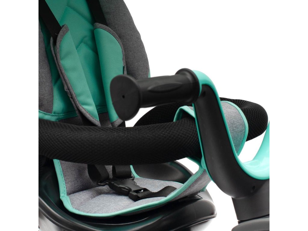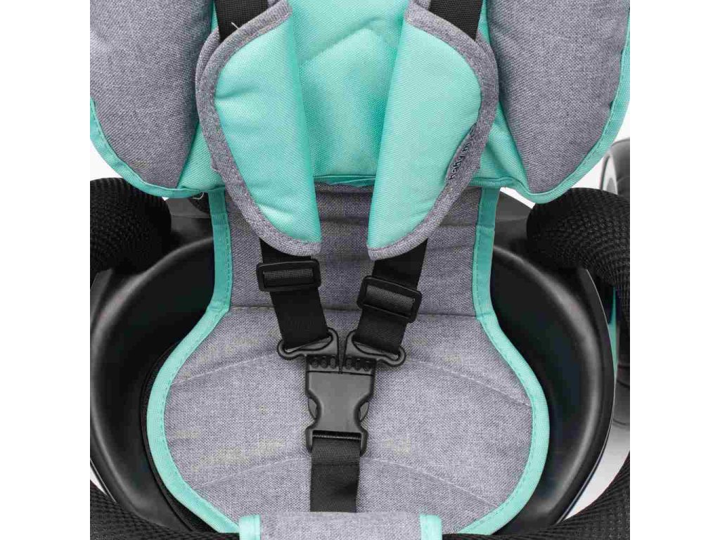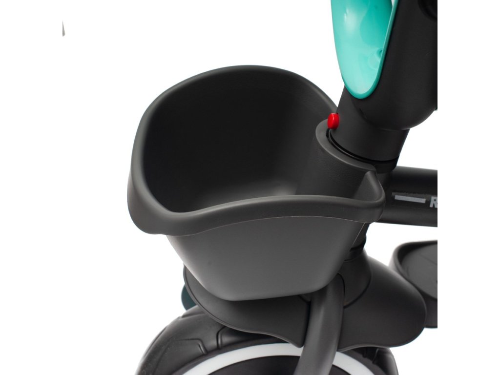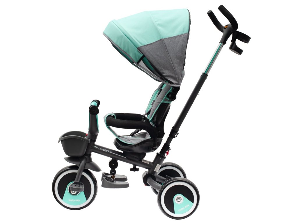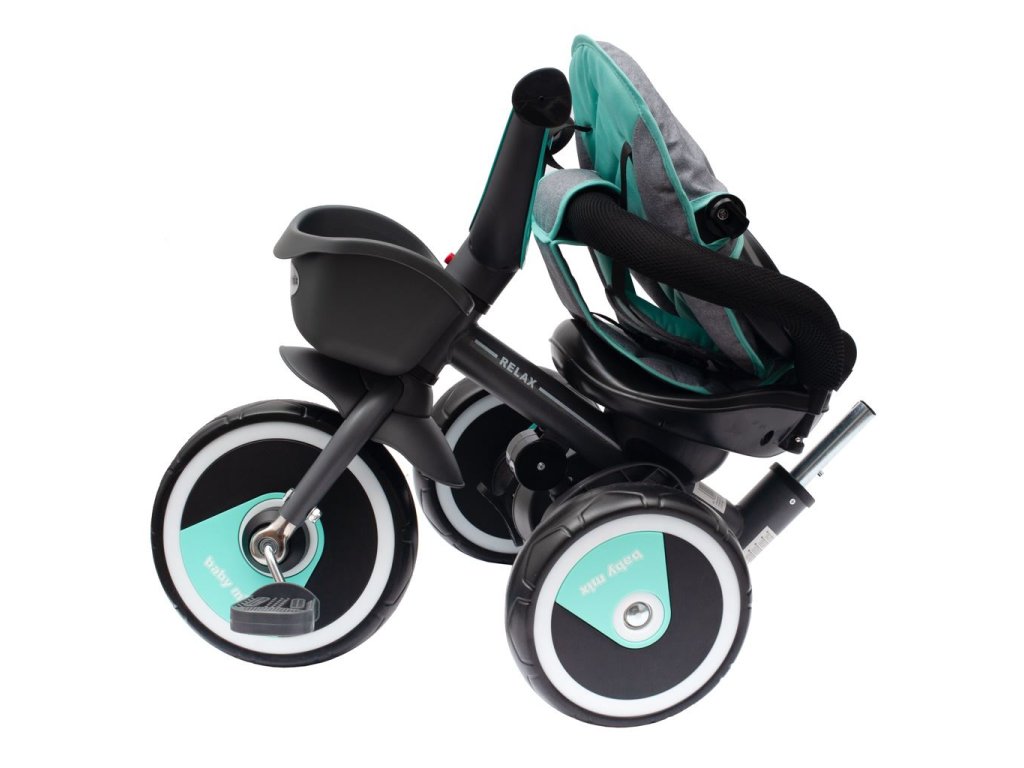 Detská šliapacia trojkolka Baby Mix 5v1 RELAX je multifunkčný dopravný prostriedok, je typickým príkladom produktov GROW UP - rastie zároveň s dieťaťom. Trojkolku môže ovládať ako dieťa, tak aj rodič pomocou nastaviteľnej vodiacej tyče. Po odobratí vodiacej tyče, sklápacej striešky, ktorá chráni pred slnkom alebo ostatných komponentov bude slúžiť ako trojkolka. Má moderný konštrukciu, pohodlné a ergonomicky tvarované sedadlo, ktoré je posuvné a otočné o 360 stupňov, čo umožní dieťaťu cestovať v smere alebo proti smeru jazdy. Je vyrobená z kvalitných a odolných materiálov a skladacia konštrukcia umožňuje bezproblémovú prepravu trojkolky napríklad v kufri auta. Jej skladanie je veľmi jednoduché, intuitívne a nevyžaduje žiadne náradie. O pohodlie a bezpečie počas jazdy sa stará odnímateľná hrazda, päťbodové bezpečnostné pásy, pohodlné stúpačky alebo kolesá vyrobené z tvrdenej peny EVA, ktoré skvele absorbujú nárazy, poskytujú perfektnú priľnavosť a nevyžadujú hustenie. Pre uloženie hračiek alebo potrieb pre dieťa je tu praktický úložný košík.