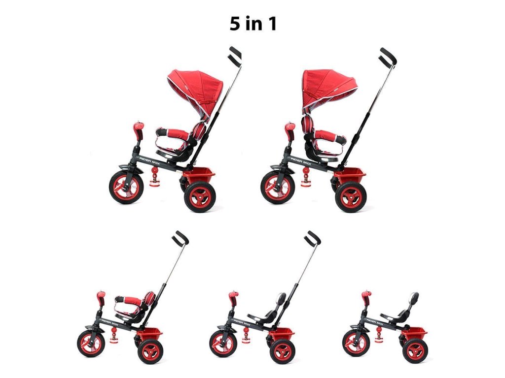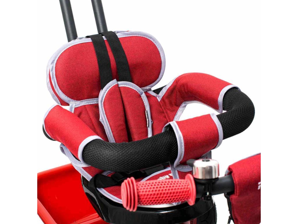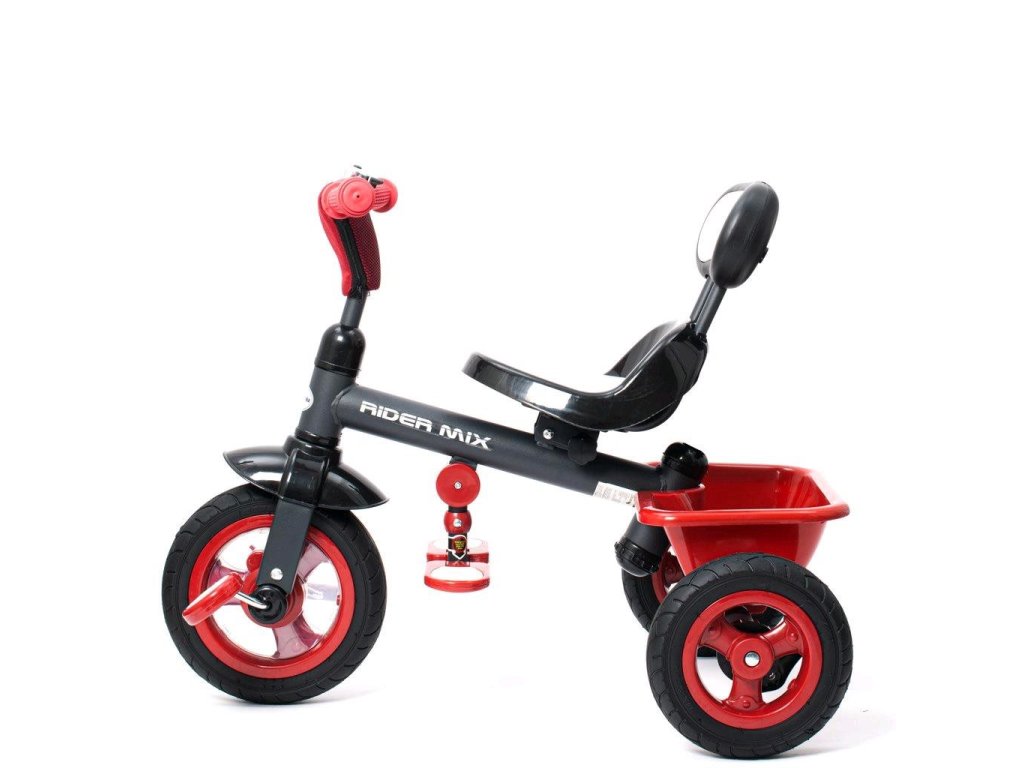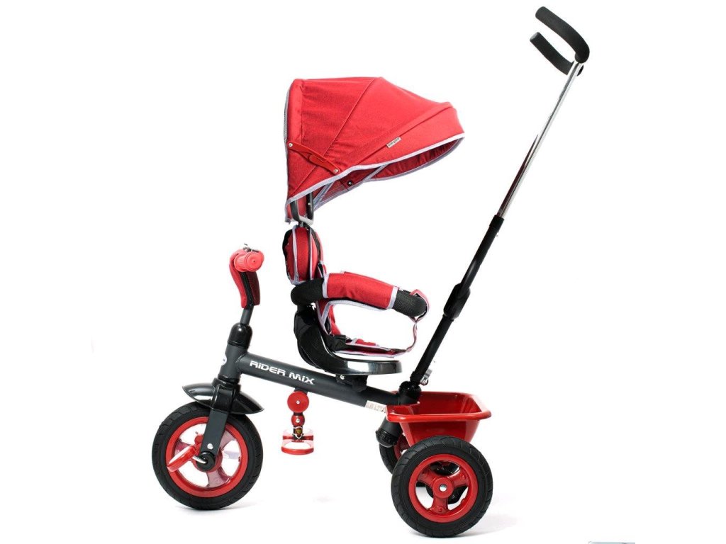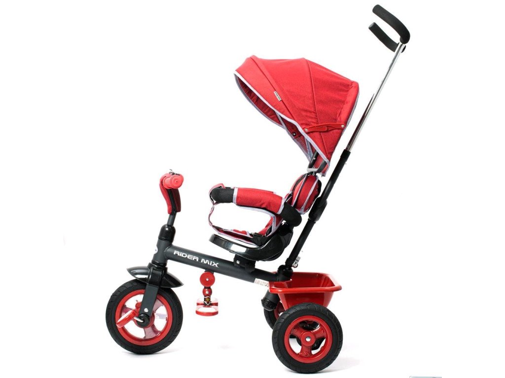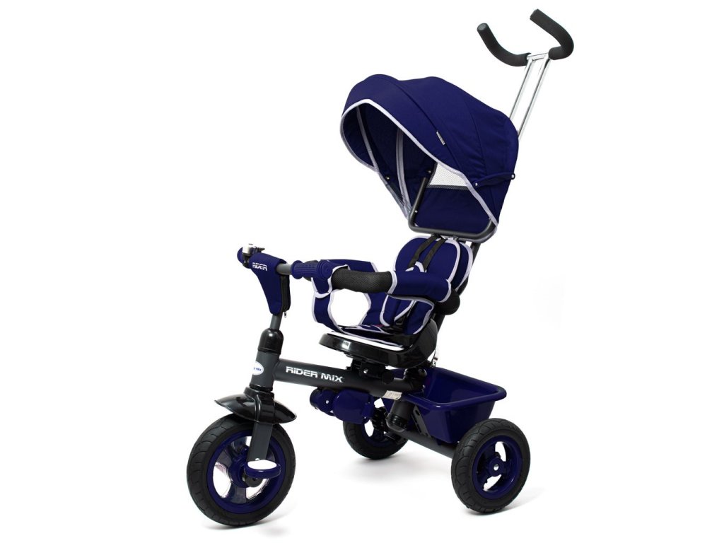 Detská šliapacia trojkolka Baby Mix RIDER 360° je multifunkčný dopravný prostriedok a je typickým príkladom produktov GROW UP - rastie zároveň s dieťaťom. Trojkolku môže ovládať ako dieťa, tak aj rodič pomocou nastaviteľnej vodiacej tyče. Po odobratí vodiace tyče, sklápacej striešky, ktorá chráni pred slnkom alebo ostatných komponentov bude slúžiť ako trojkolka. Má modernú konštrukciu, pohodlné a ergonomicky tvarované sedadlo, ktoré je posuvné a otočné o 360 stupňov, čo umožní dieťaťu cestovať v smere alebo proti smeru jazdy. Je vyrobená z kvalitných a odolných materiálov a skladacia konštrukcia umožňuje bezproblémovú prepravu trojkolky napríklad v kufri auta. Jej skladanie je veľmi jednoduché, intuitívne a nevyžaduje žiadne náradie. O pohodlie a bezpečie počas jazdy sa stará odnímateľná hrazda, päťbodové bezpečnostné pásy, pohodlné stúpačky alebo gumové kolesá, ktoré skvele absorbujú nerovnosti, poskytujú perfektnú priľnavosť a nevyžadujú hustenie. Pre uloženie hračiek alebo potrieb pre dieťa je tu praktický úložný košík.