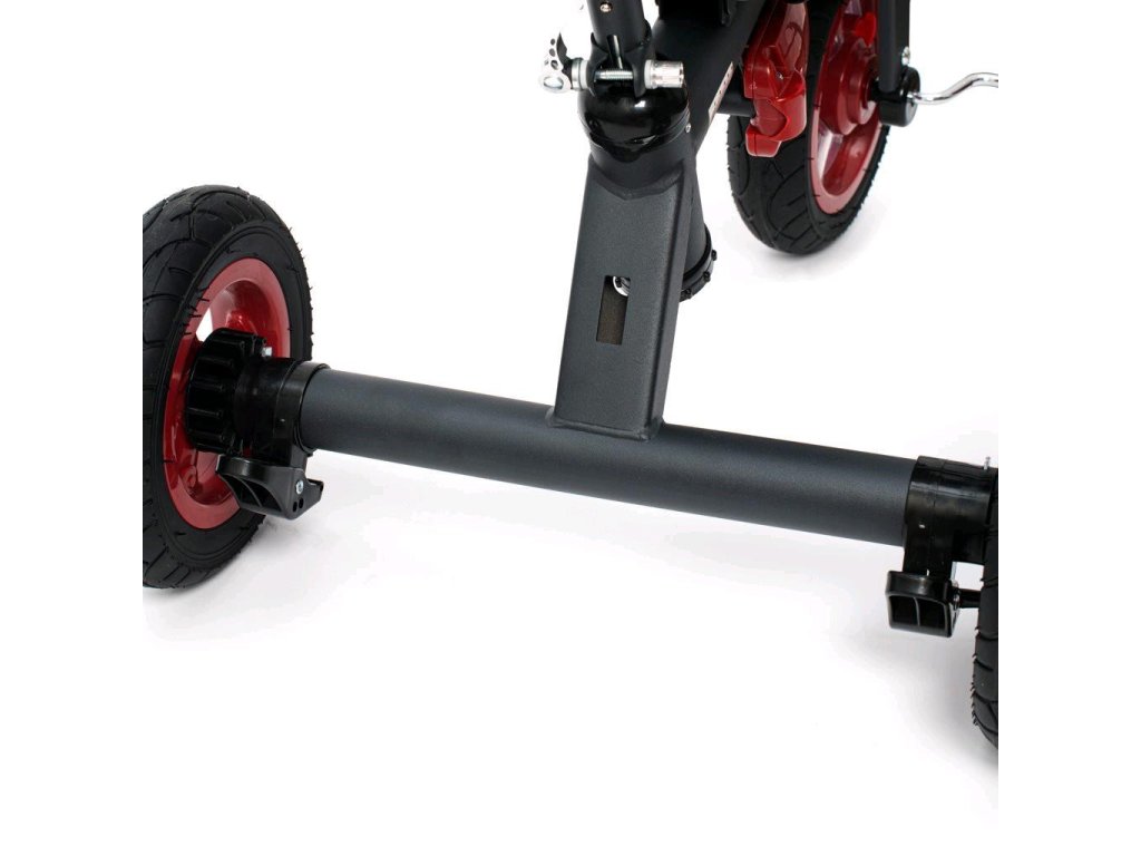 - Pevný oceľový rám, skladacia konštrukcia umožňuje bezproblémovú prepravu trojkolky napríklad v kufri auta