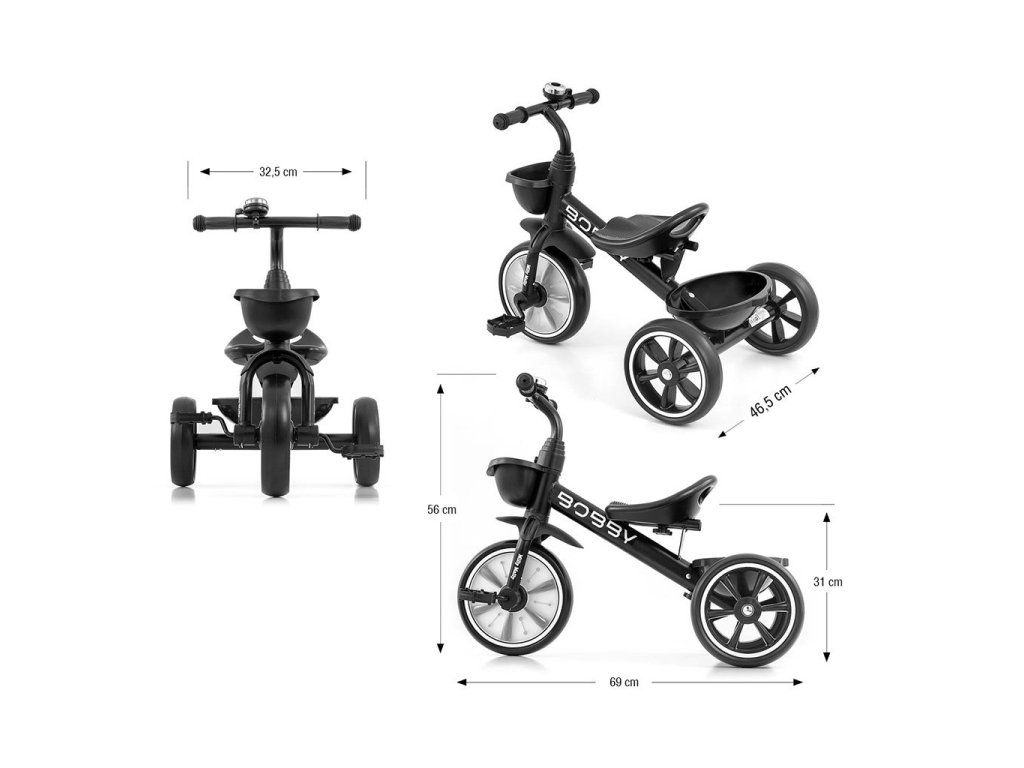 Trojkolka BOBBY bola vytvorená s ohľadom na pohodlie a bezpečnosť detí a komfort rodičov. Ideálne riešenie pre aktívne deti, ktoré už nebaví jazdiť v kočíku. Bobby je stabilná a bezpečná trojkolka pre vaše dieťa s nadčasovým dizajnom a pohodlným tvarovaným sedadlom. Predné koleso je zabezpečené tak, aby sa zabránilo zachyteniu nôh vášho dieťaťa, keď náš malý cyklista šliape do pedálov. Riadidlá bicykla sú odnímateľné pomocou tlačidla na prednej strane riadidiel.