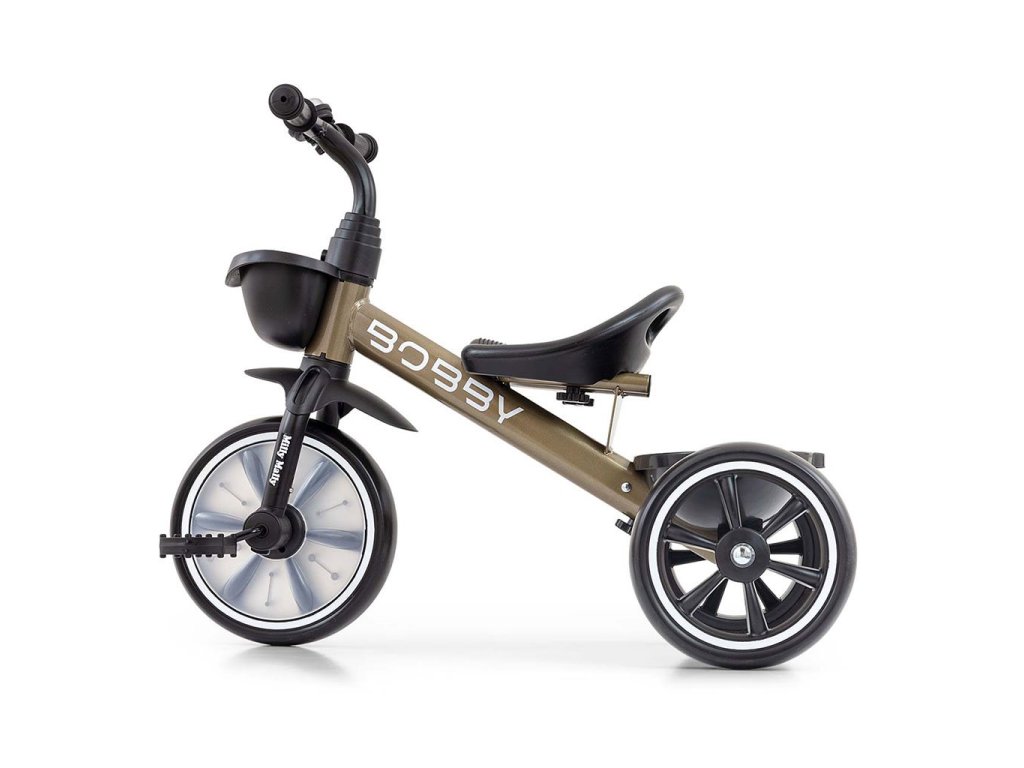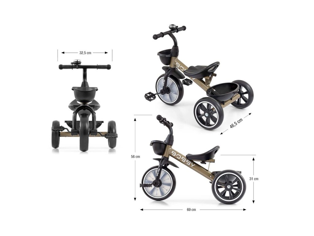 Trojkolka BOBBY bola vytvorená s ohľadom na pohodlie a bezpečnosť detí a komfort rodičov. Ideálne riešenie pre aktívne deti, ktoré už nebaví jazdiť v kočíku. Bobby je stabilná a bezpečná trojkolka pre vaše dieťa s nadčasovým dizajnom a pohodlným tvarovaným sedadlom. Predné koleso je zabezpečené tak, aby sa zabránilo zachyteniu nôh vášho dieťaťa, keď náš malý cyklista šliape do pedálov. Riadidlá bicykla sú odnímateľné pomocou tlačidla na prednej strane riadidiel.