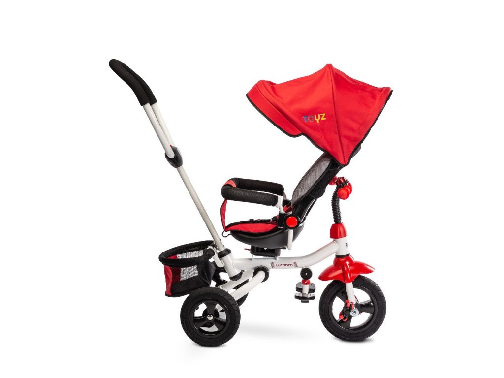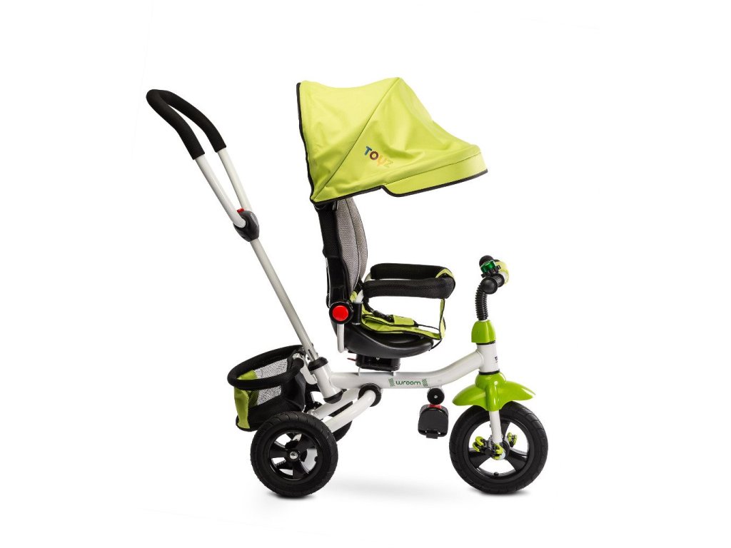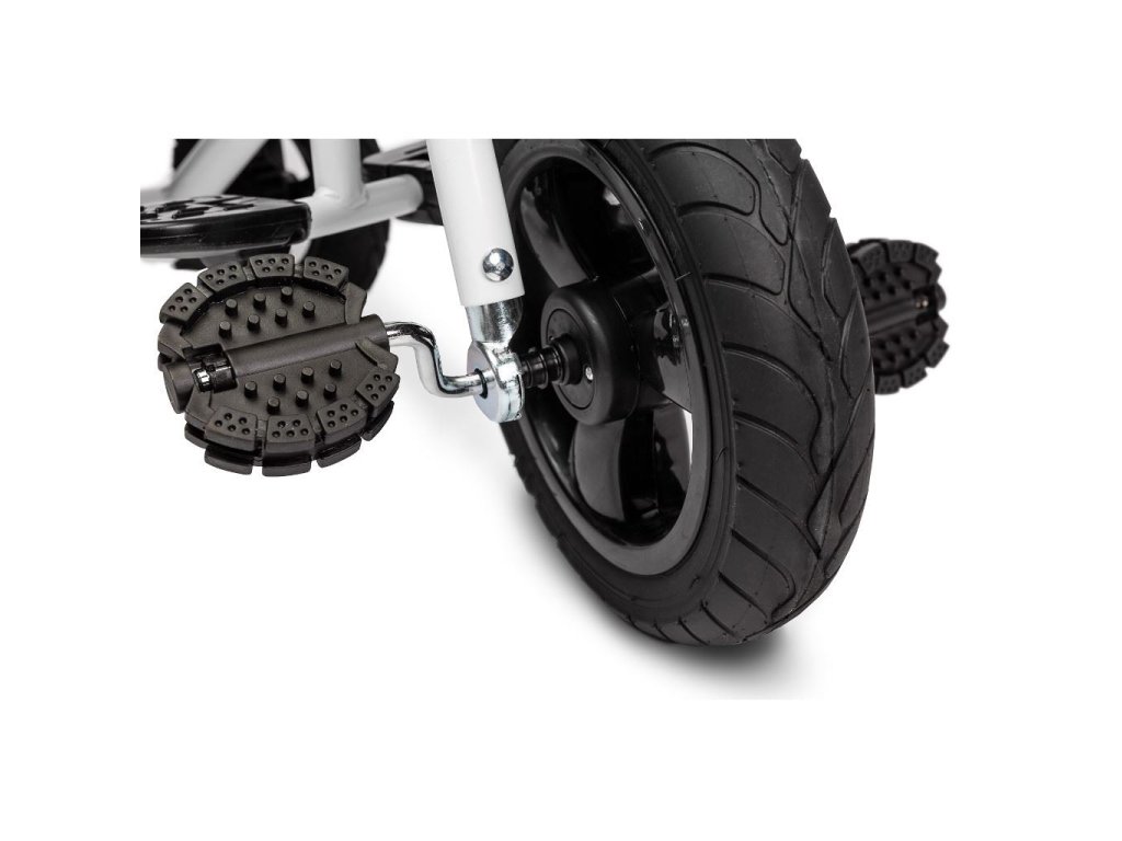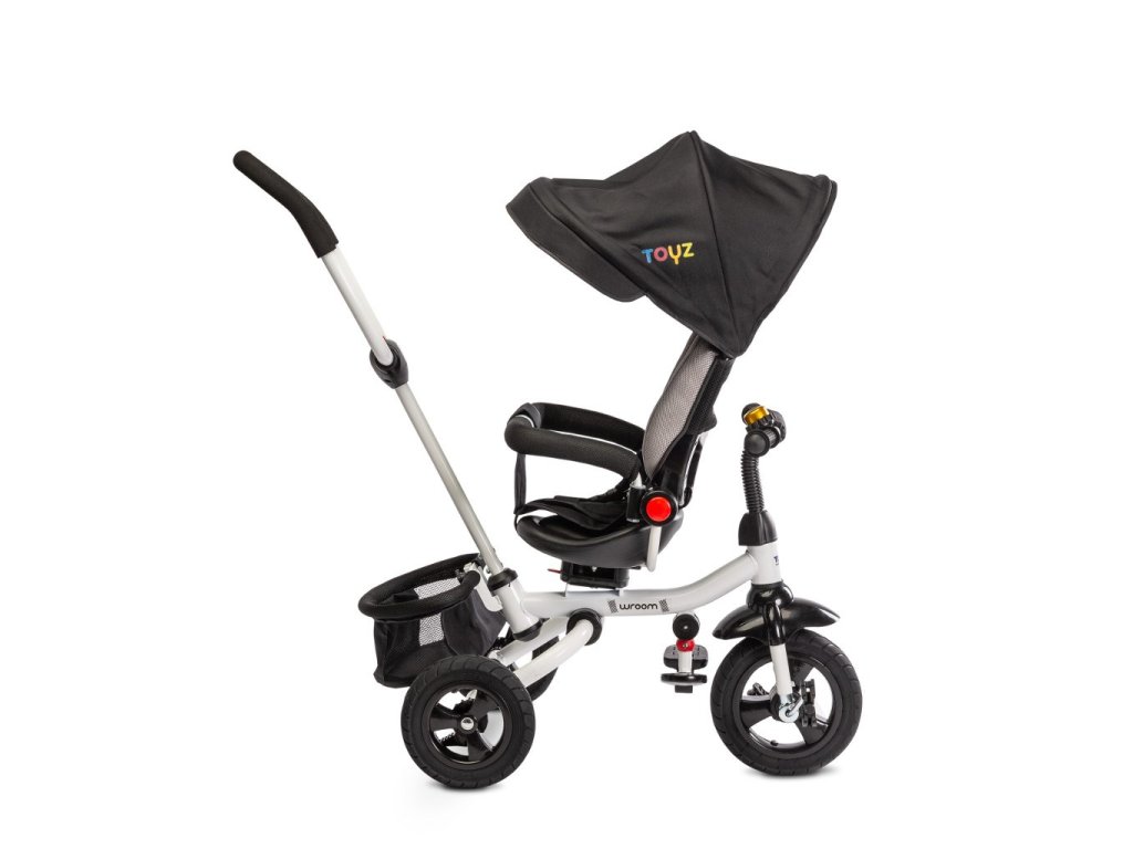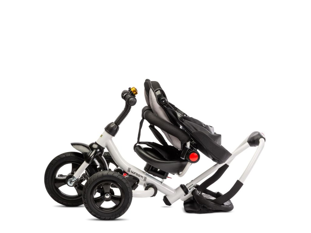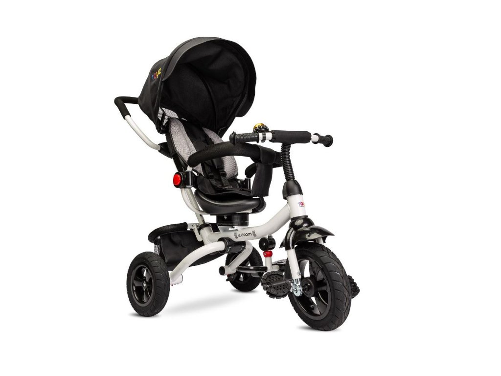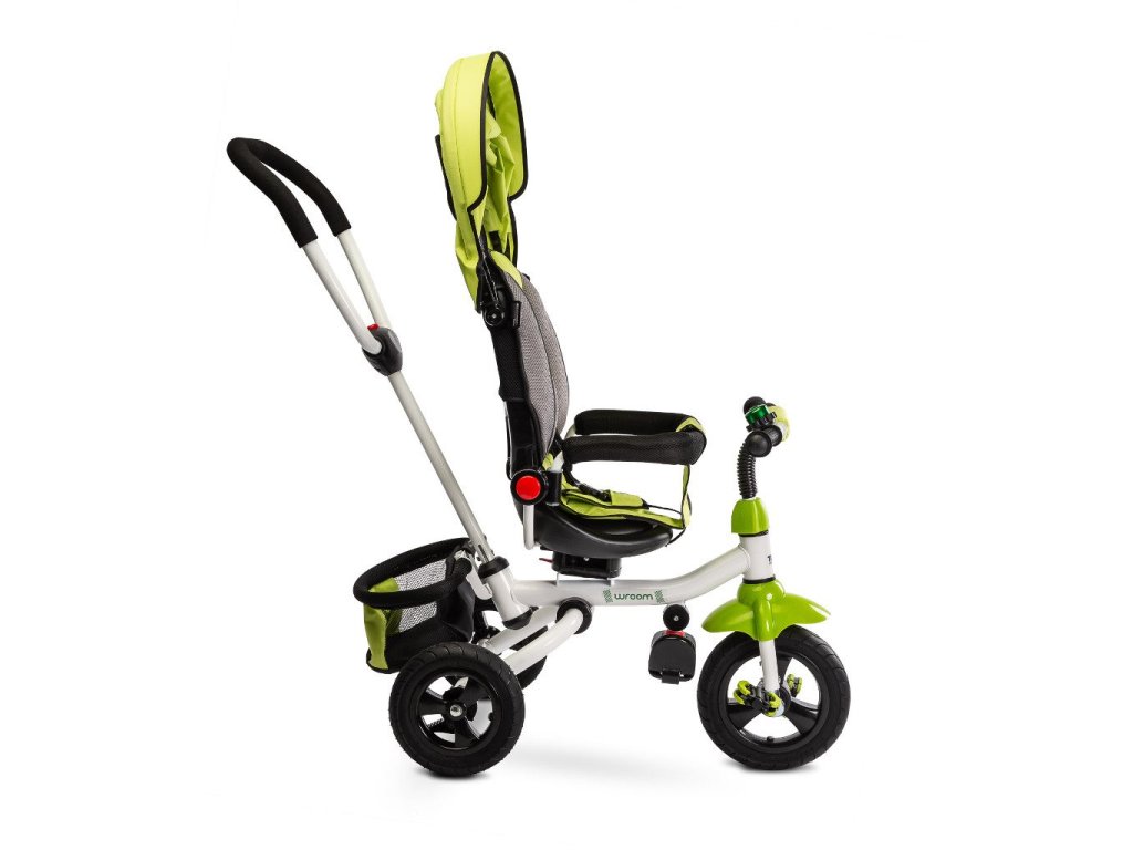 Detská šliapacia trojkolka Wroom s otočným sedadlom je pohodlná trojkolka, ktorú možno použiť dvoma spôsobmi: dieťa sa môže voziť dopredu alebo dozadu proti smeru jazdy a nohy mať položené na sklopnej opierke alebo dopredu jazdiť samo. Rozpojovacia zábrana uľahčuje nasadnutie a jej mäkké polstrovanie zaisťuje bezpečnosť a pohodlie pri jazde. V zadnej časti je košík na drobné predmety a rukoväť pre riadenie s dvojstupňovým nastavením výšky. Trojkolka má kolesá z peny, takže sa nemusíte starať o nafukovanie alebo obávať prepichnutých pneumatík. Obe zadné kolesá majú samostatné brzdy. Skladacia konštrukcia uľahčuje prepravu v kufri a jej skladovanie, keď sa nepoužíva.
