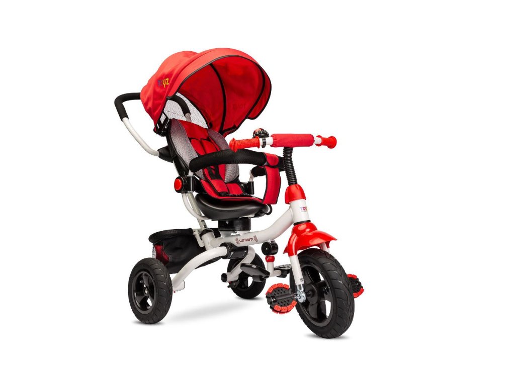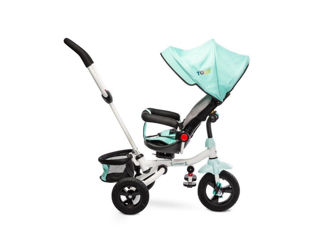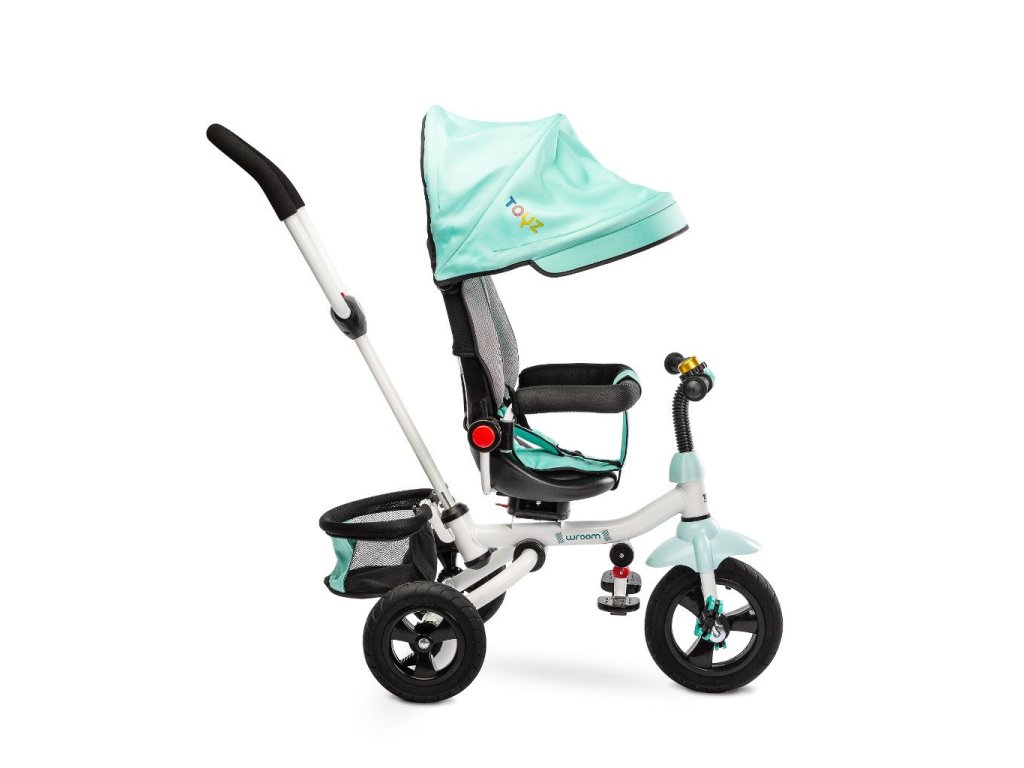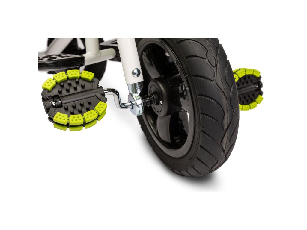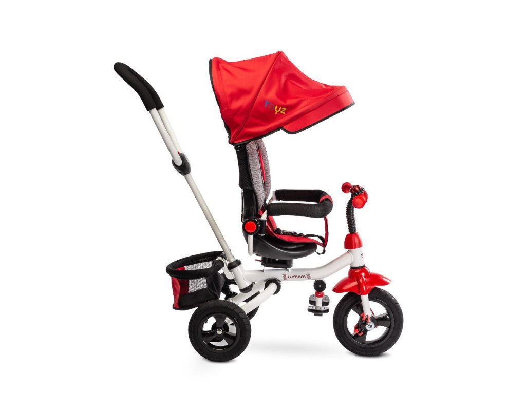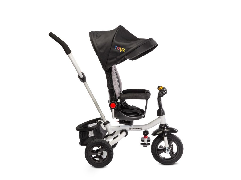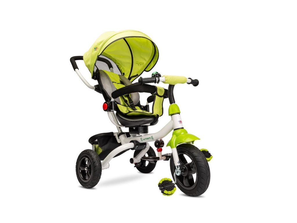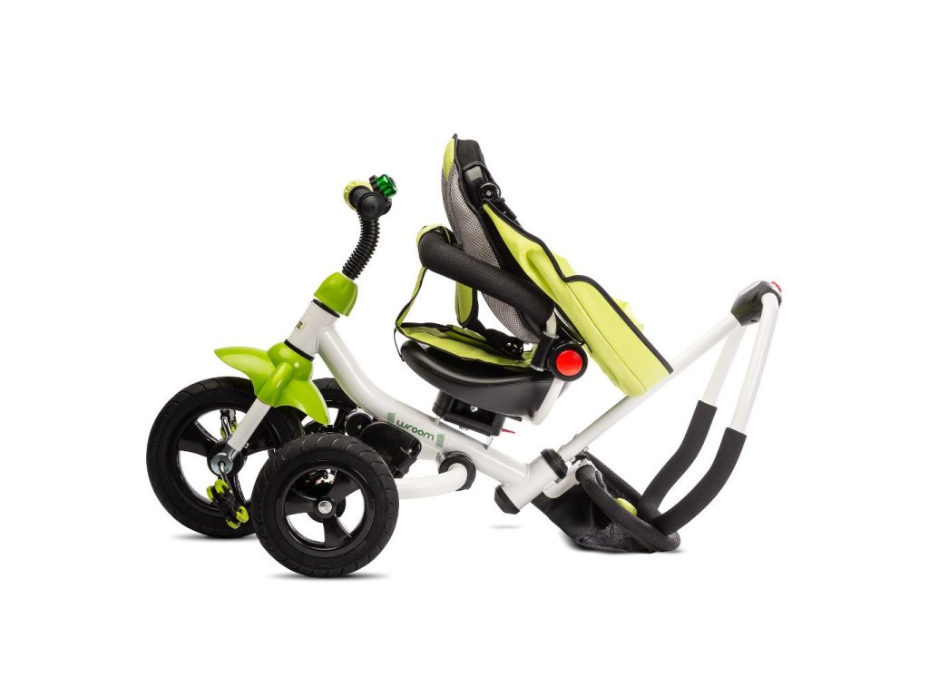 Detská šliapacia trojkolka Wroom s otočným sedadlom je pohodlná trojkolka, ktorú možno použiť dvoma spôsobmi: dieťa sa môže voziť dopredu alebo dozadu proti smeru jazdy a nohy mať položené na sklopnej opierke alebo dopredu jazdiť samo. Rozpojovacia zábrana uľahčuje nasadnutie a jej mäkké polstrovanie zaisťuje bezpečnosť a pohodlie pri jazde. V zadnej časti je košík na drobné predmety a rukoväť pre riadenie s dvojstupňovým nastavením výšky. Trojkolka má kolesá z peny, takže sa nemusíte starať o nafukovanie alebo obávať prepichnutých pneumatík. Obe zadné kolesá majú samostatné brzdy. Skladacia konštrukcia uľahčuje prepravu v kufri a jej skladovanie, keď sa nepoužíva.