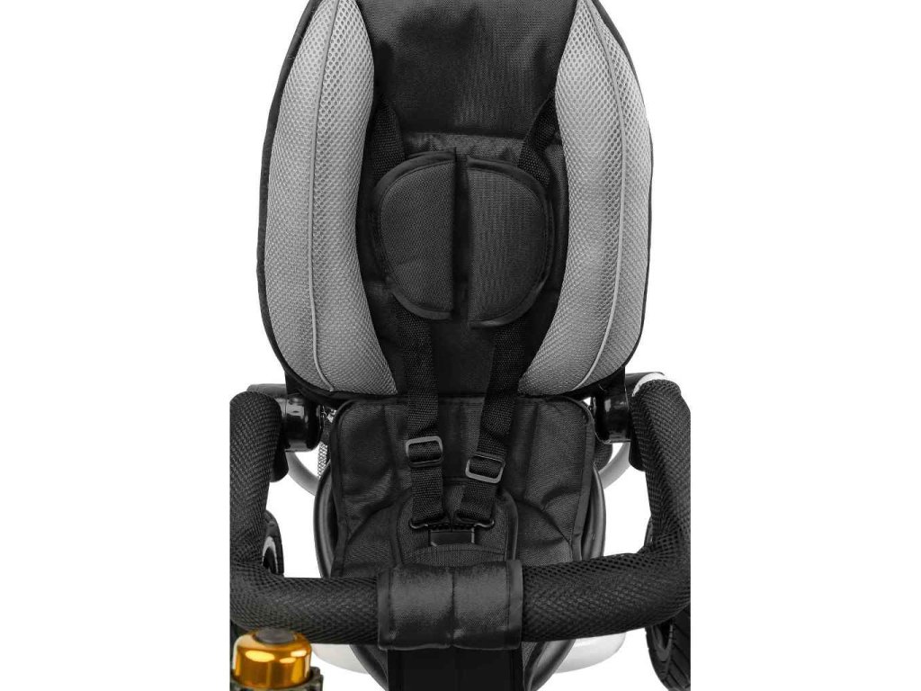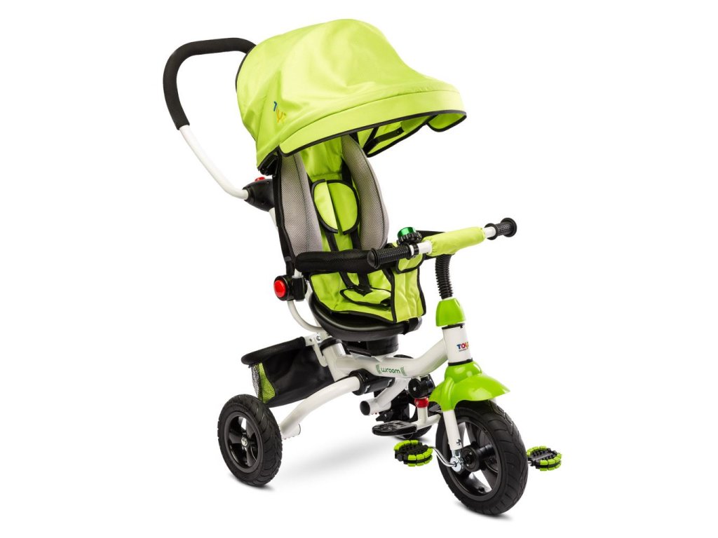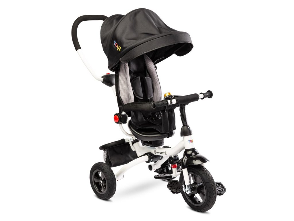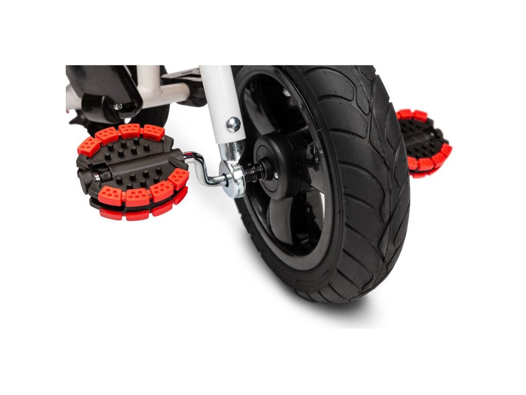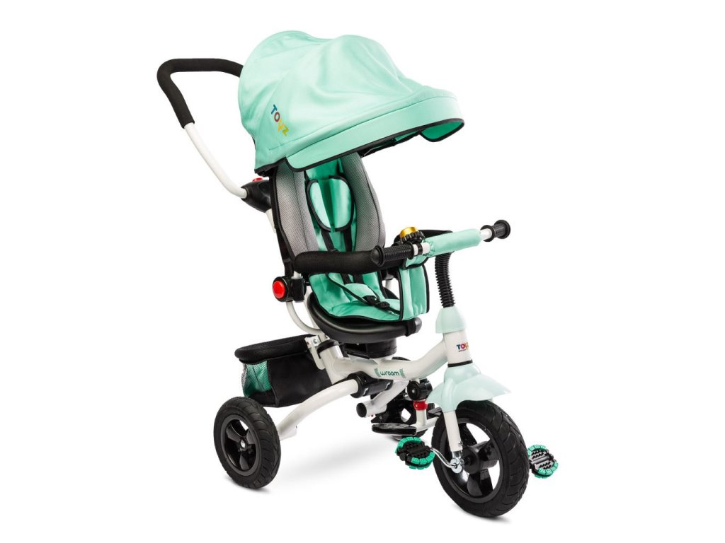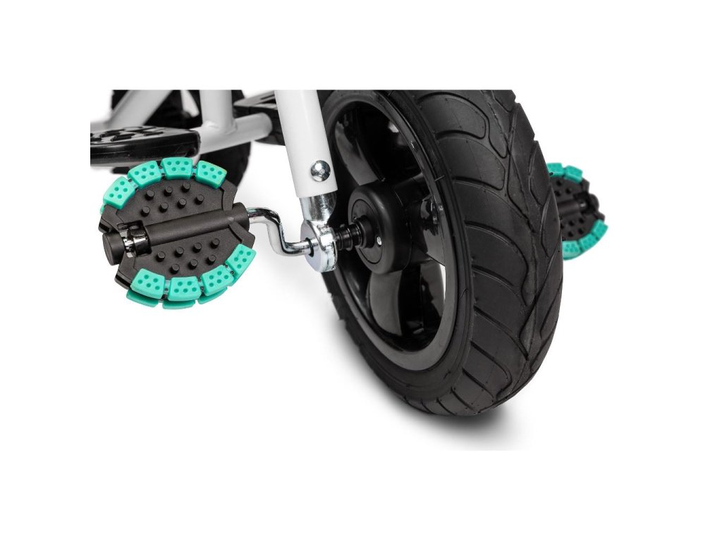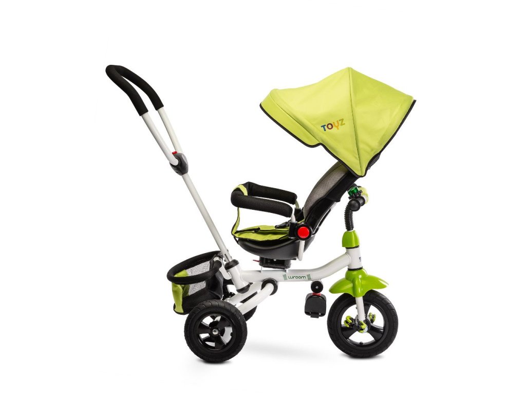 Detská šliapacia trojkolka Wroom s otočným sedadlom je pohodlná trojkolka, ktorú možno použiť dvoma spôsobmi: dieťa sa môže voziť dopredu alebo dozadu proti smeru jazdy a nohy mať položené na sklopnej opierke alebo dopredu jazdiť samo. Rozpojovacia zábrana uľahčuje nasadnutie a jej mäkké polstrovanie zaisťuje bezpečnosť a pohodlie pri jazde. V zadnej časti je košík na drobné predmety a rukoväť pre riadenie s dvojstupňovým nastavením výšky. Trojkolka má kolesá z peny, takže sa nemusíte starať o nafukovanie alebo obávať prepichnutých pneumatík. Obe zadné kolesá majú samostatné brzdy. Skladacia konštrukcia uľahčuje prepravu v kufri a jej skladovanie, keď sa nepoužíva.