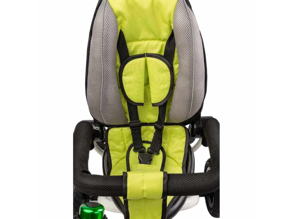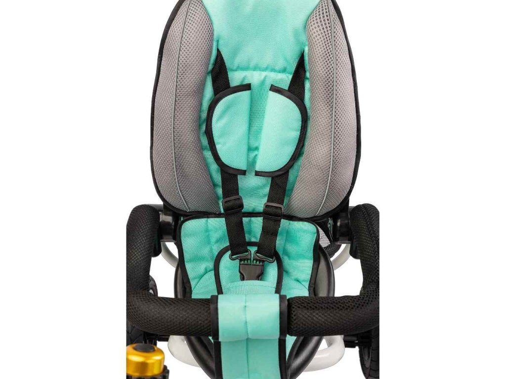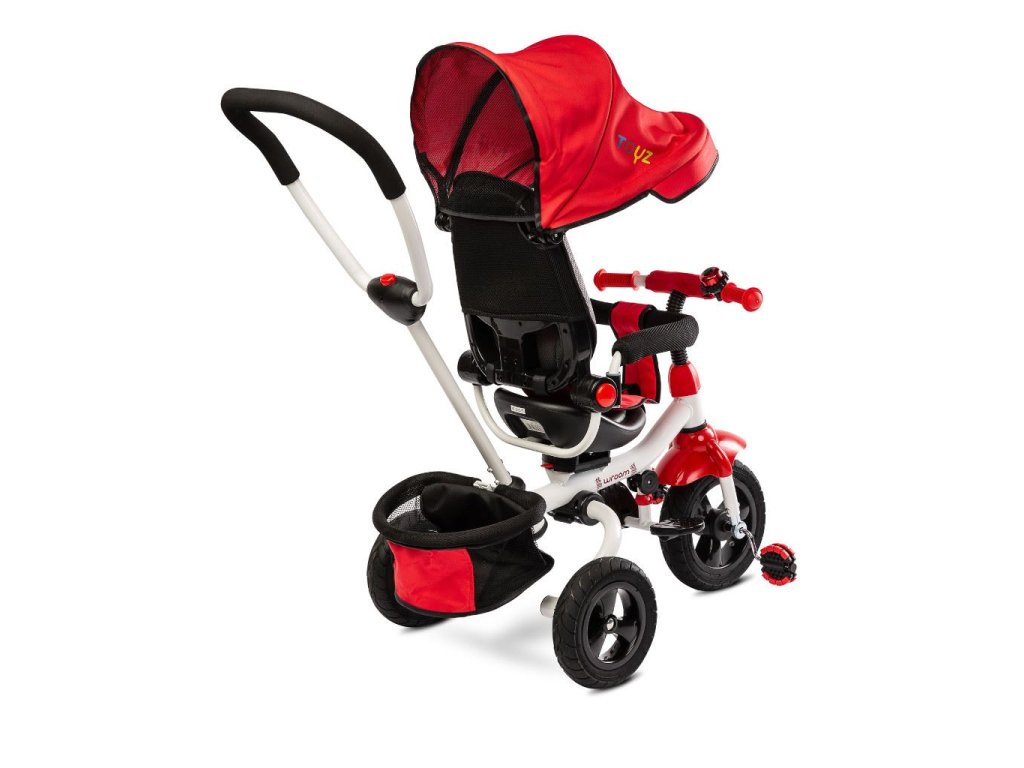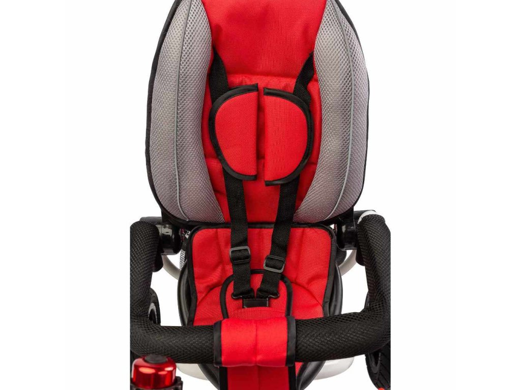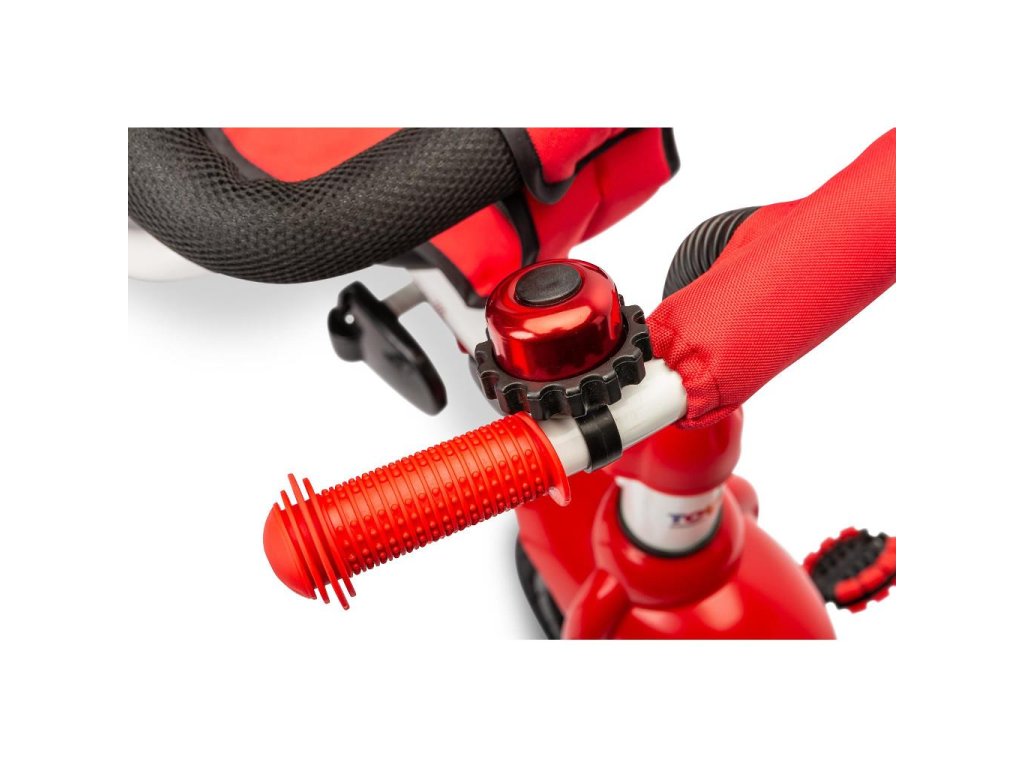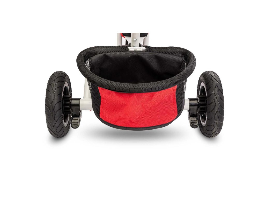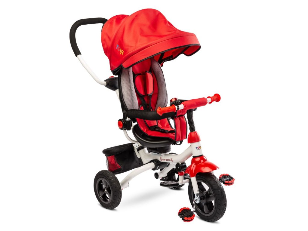 Detská šliapacia trojkolka Wroom s otočným sedadlom je pohodlná trojkolka, ktorú možno použiť dvoma spôsobmi: dieťa sa môže voziť dopredu alebo dozadu proti smeru jazdy a nohy mať položené na sklopnej opierke alebo dopredu jazdiť samo. Rozpojovacia zábrana uľahčuje nasadnutie a jej mäkké polstrovanie zaisťuje bezpečnosť a pohodlie pri jazde. V zadnej časti je košík na drobné predmety a rukoväť pre riadenie s dvojstupňovým nastavením výšky. Trojkolka má kolesá z peny, takže sa nemusíte starať o nafukovanie alebo obávať prepichnutých pneumatík. Obe zadné kolesá majú samostatné brzdy. Skladacia konštrukcia uľahčuje prepravu v kufri a jej skladovanie, keď sa nepoužíva.