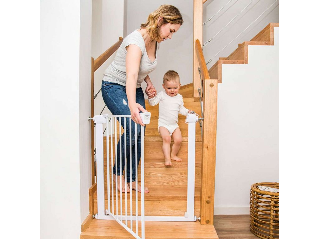 Možno ju pripevniť len pomocou vzpier, takže nepoškodzuje rámy dverí ani schodiskové prvky, a to bez potreby vŕtania. Vďaka silikónovým podložkám nezanecháva na oporných bodoch žiadne stopy. Univerzálne rozmery a prídavný nadstavec umožňujú inštaláciu v uličkách od 75 cm do 96 cm. Systém dvojitého uzamykania zvyšujúci bezpečnosť umožňuje, aby bránu otvorila dospelá osoba jednou rukou a zároveň účinne blokovala prístup dieťaťa. Výrobok je v súlade s normou EN 1930, pred inštaláciou si prečítajte návod.