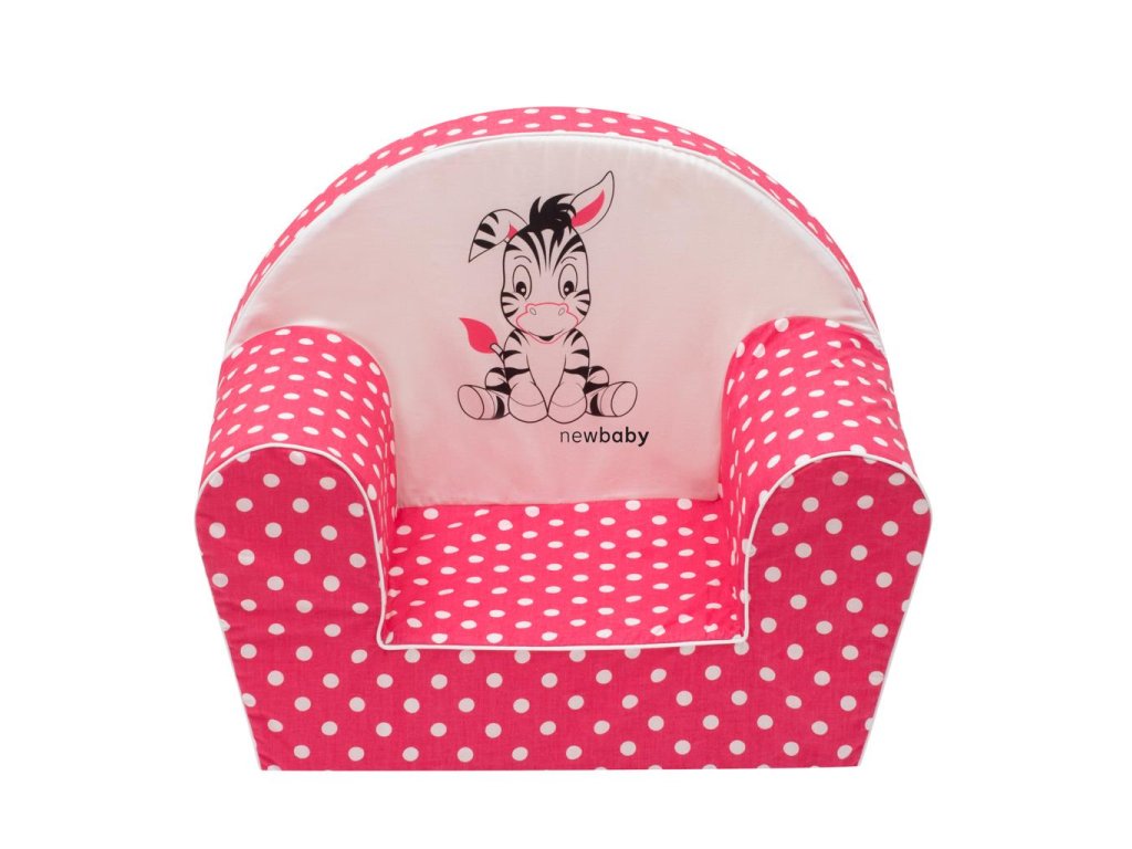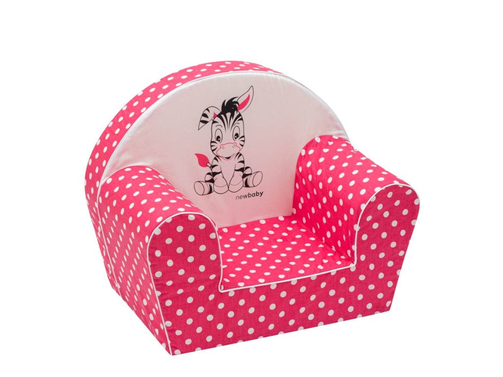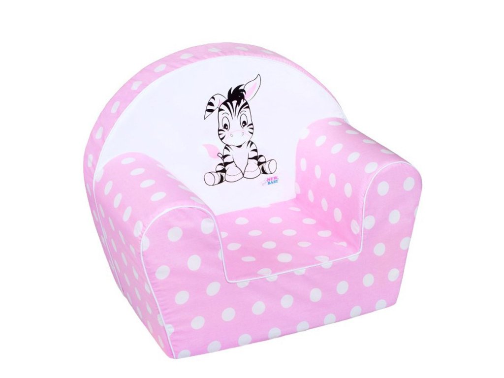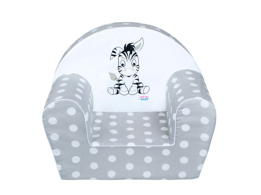 Detské kresielko New Baby Zebra je skvelým a veľmi obľúbeným doplnkom do detskej izbičky. Toto kreslo pre najmenšie deti je vyrobené z mäkkého materiálu a má snímateľný bavlnený poťah, ktorý možno prať. Poťah má veľmi príjemné farby s potlačou bodiek a zdobí ho obrázok roztomilej zebry. Rozmery: vxš: cca 42x53 cm, výška operadla cca 29 cm, šírka sedadla cca 25 cm. Zloženie: poťah 100% bavlna, vnútorný materiál: polyuretánová pena.