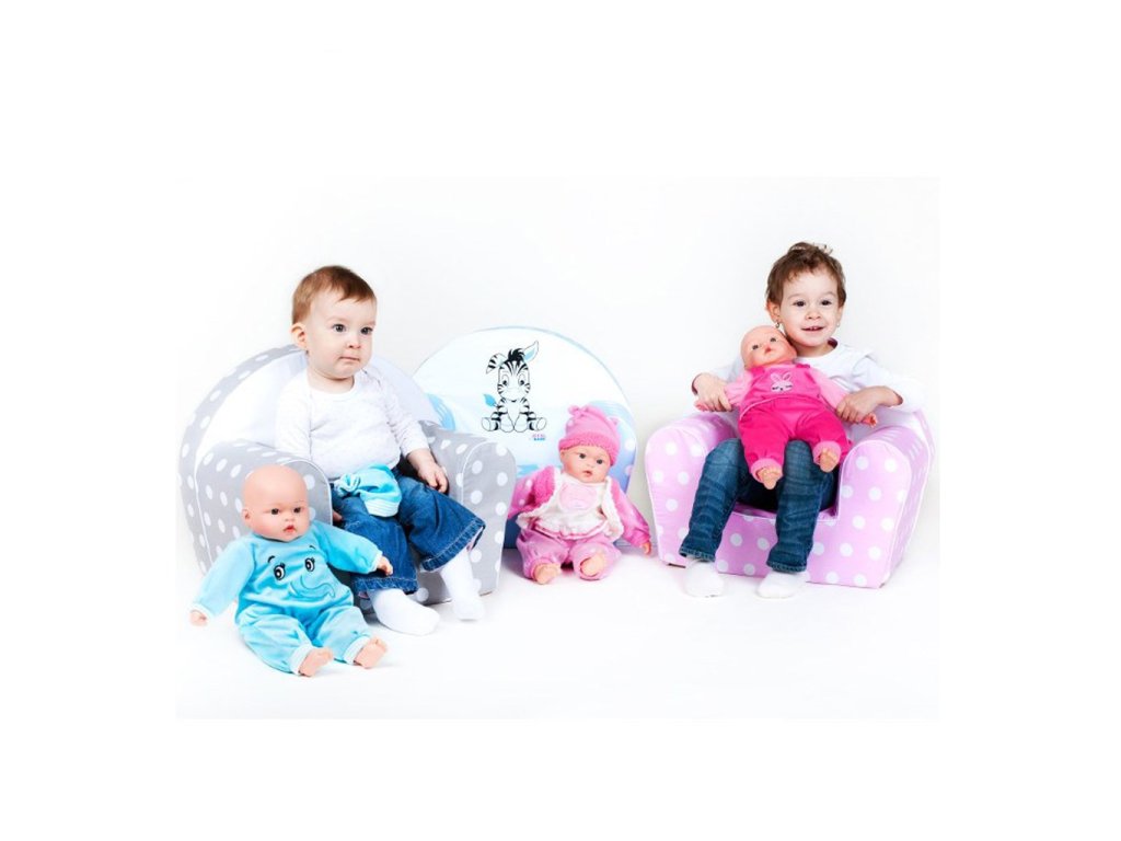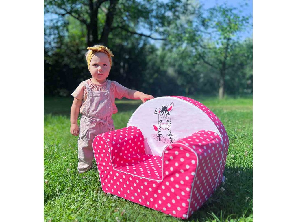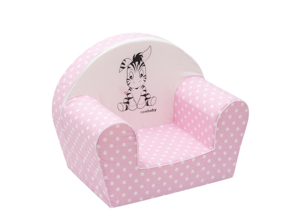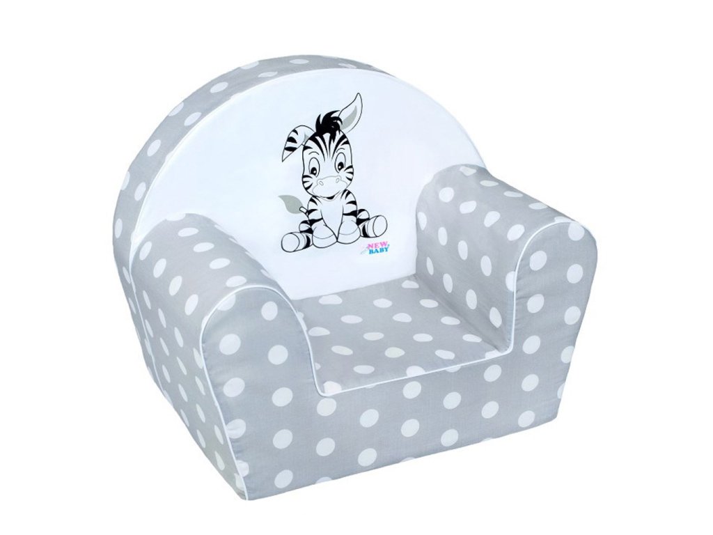 Detské kresielko New Baby Zebra je skvelým a veľmi obľúbeným doplnkom do detskej izbičky. Toto kreslo pre najmenšie deti je vyrobené z mäkkého materiálu a má snímateľný bavlnený poťah, ktorý možno prať. Poťah má veľmi príjemné farby s potlačou bodiek a zdobí ho obrázok roztomilej zebry. Rozmery: vxš: cca 42x53 cm, výška operadla cca 29 cm, šírka sedadla cca 25 cm. Zloženie: poťah 100% bavlna, vnútorný materiál: polyuretánová pena.