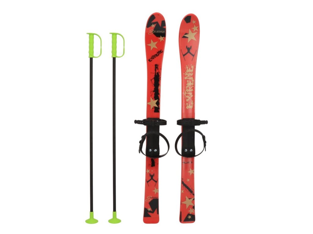 Detské lyže s viazaním a palicami Baby Mix 90 cm červené