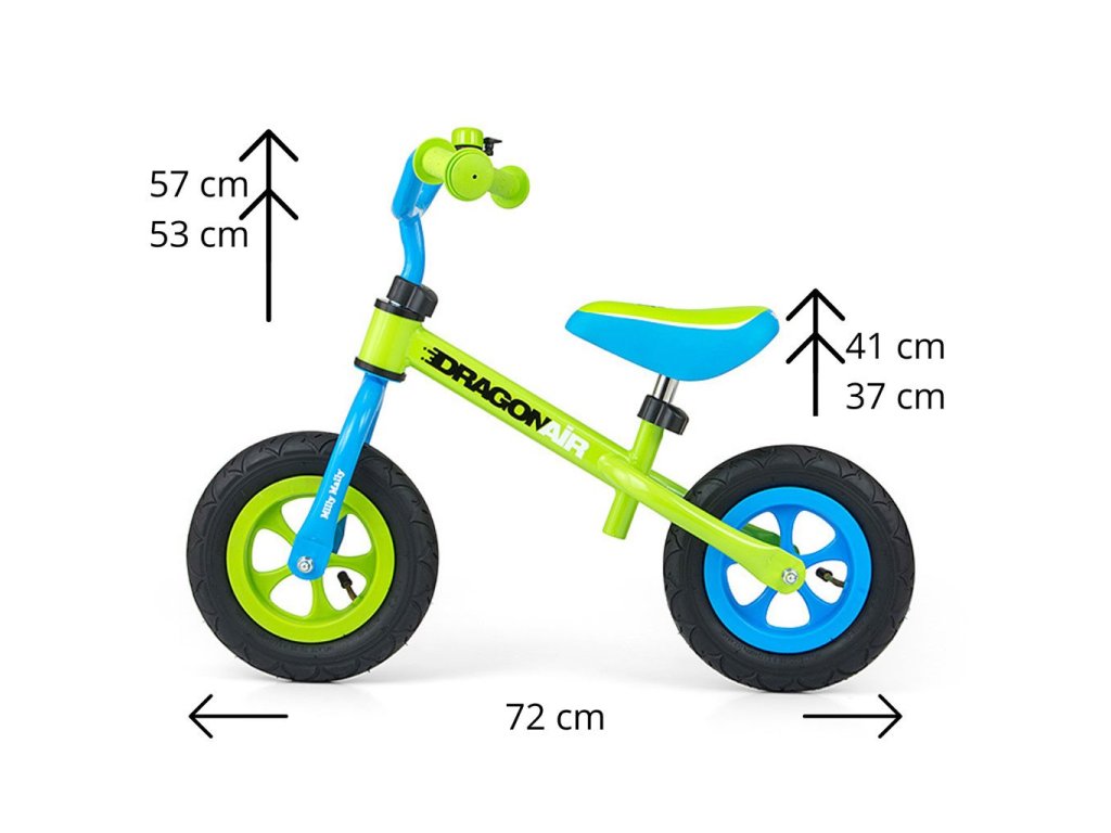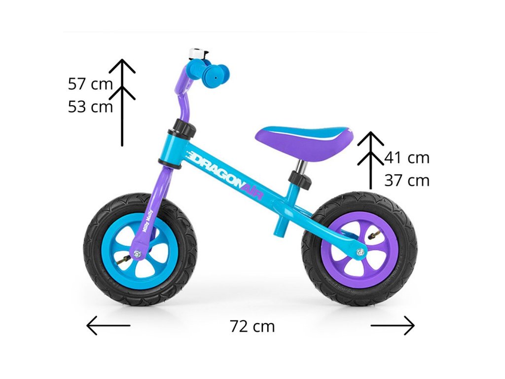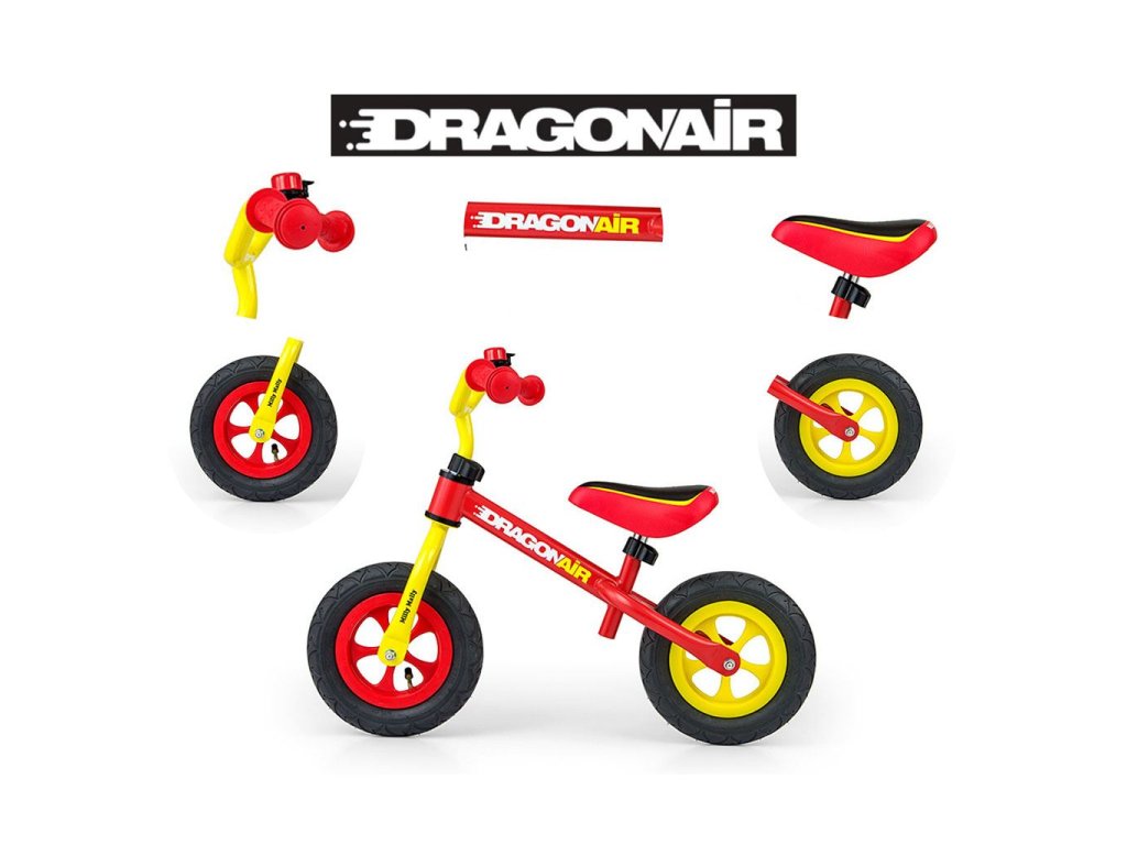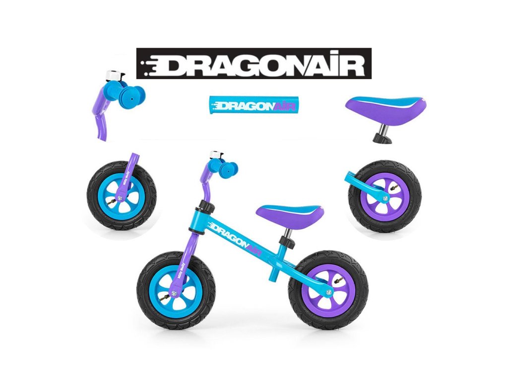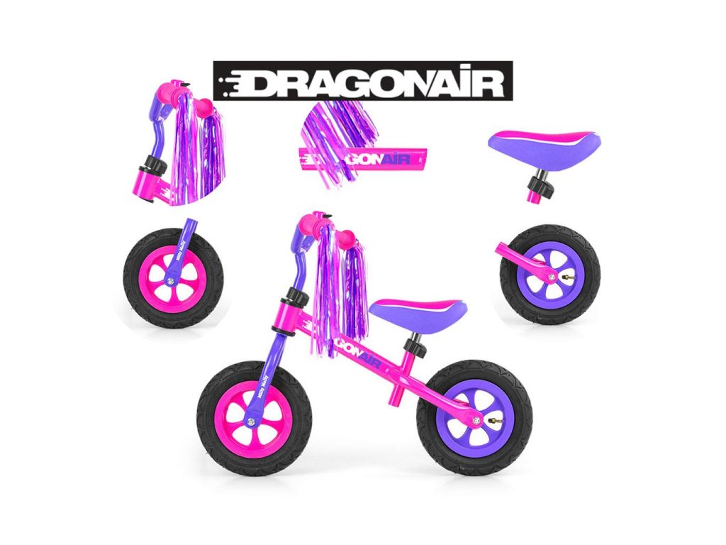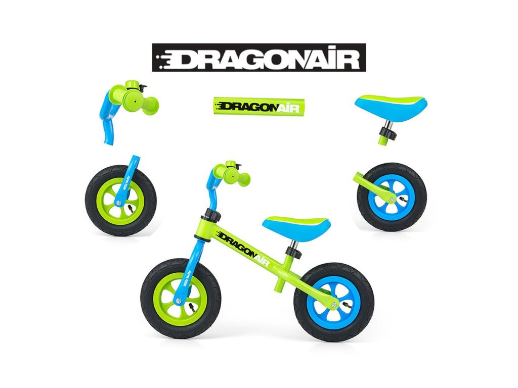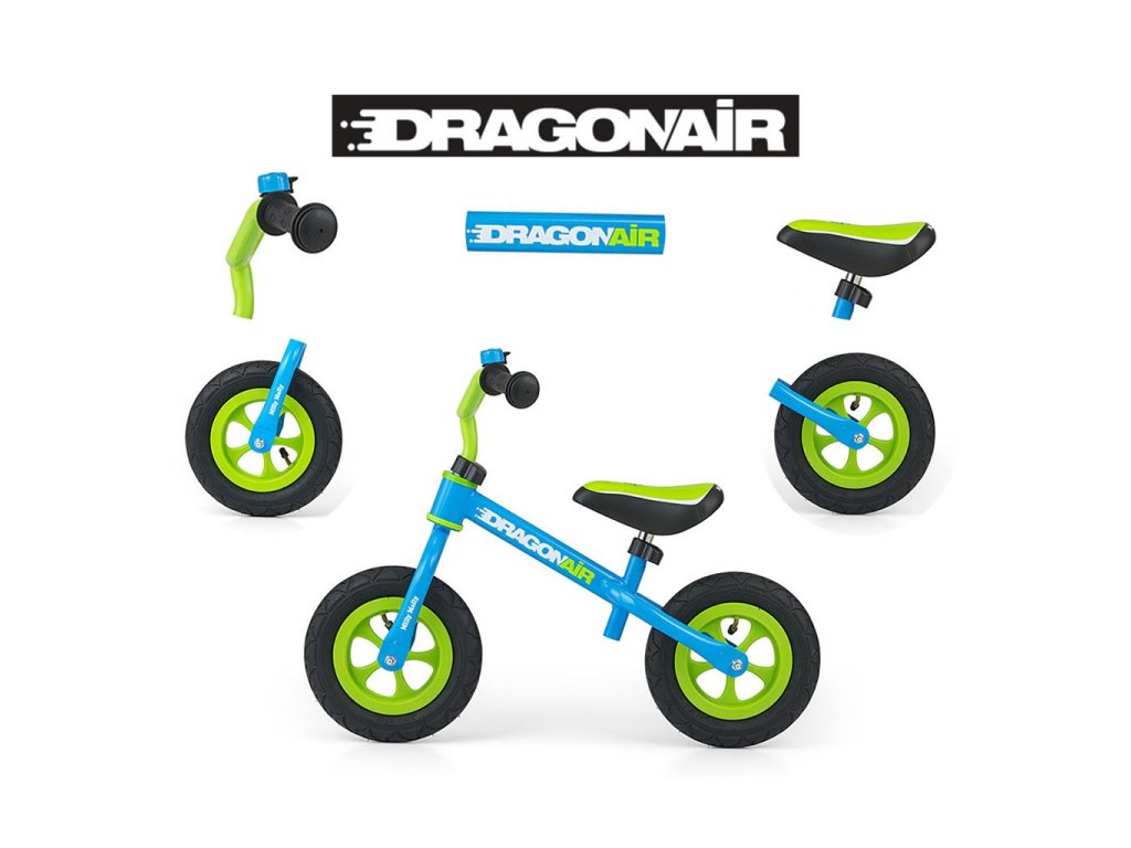 Detské odrážadlo-bicykel Milly Mally DRAGON AIR je ideálne, keď sa dieťa učí udržať rovnováhu. Vďaka širokým nafukovacím gumovým pneumatikám z odolného materiálu zabezpečí stabilitu a bezpečnosť na rôznych povrchoch. Nastaviteľné riadidlá a sedlo zabezpečia, že odrážadlo-bicykel "porastie" s malým cyklistom. Nekĺzavé rukoväte a vhodne profilované sedlo poskytne pohodlie pri objavovaní nových "cyklistických trás".