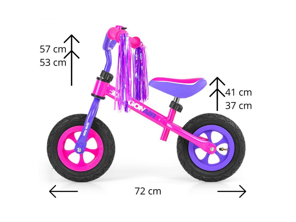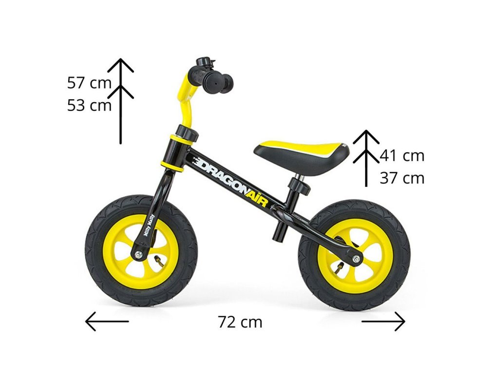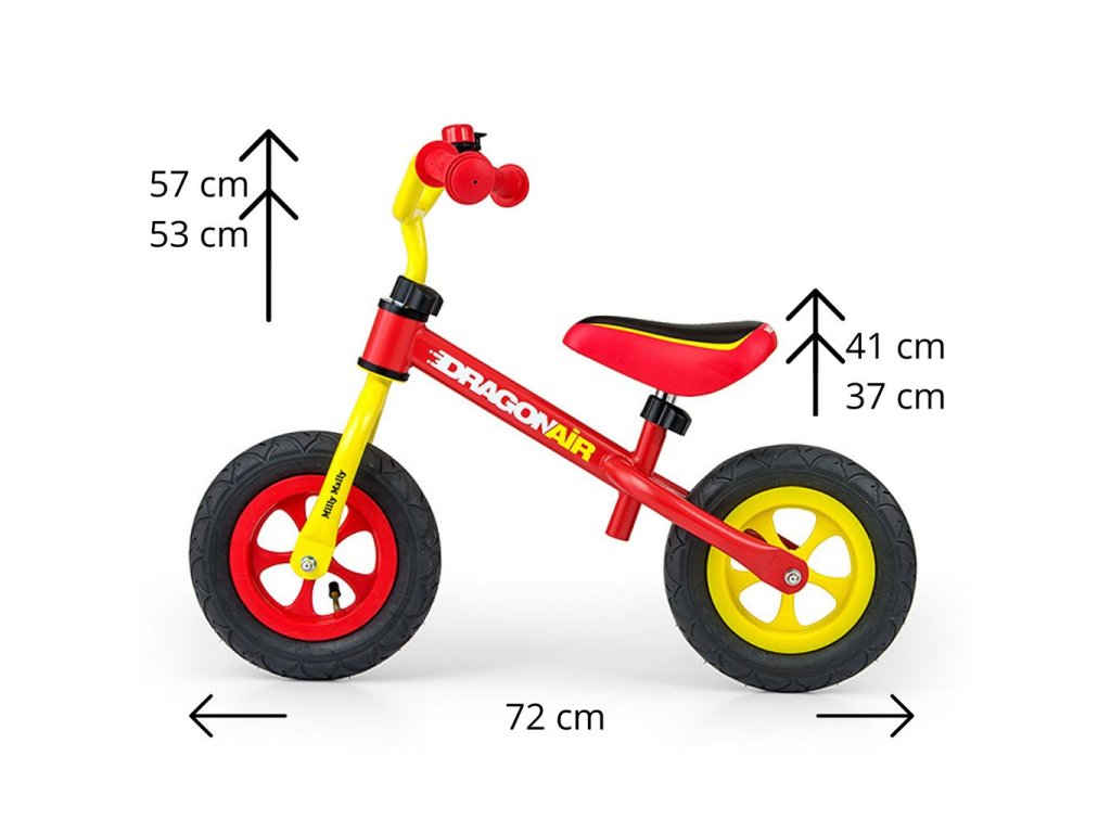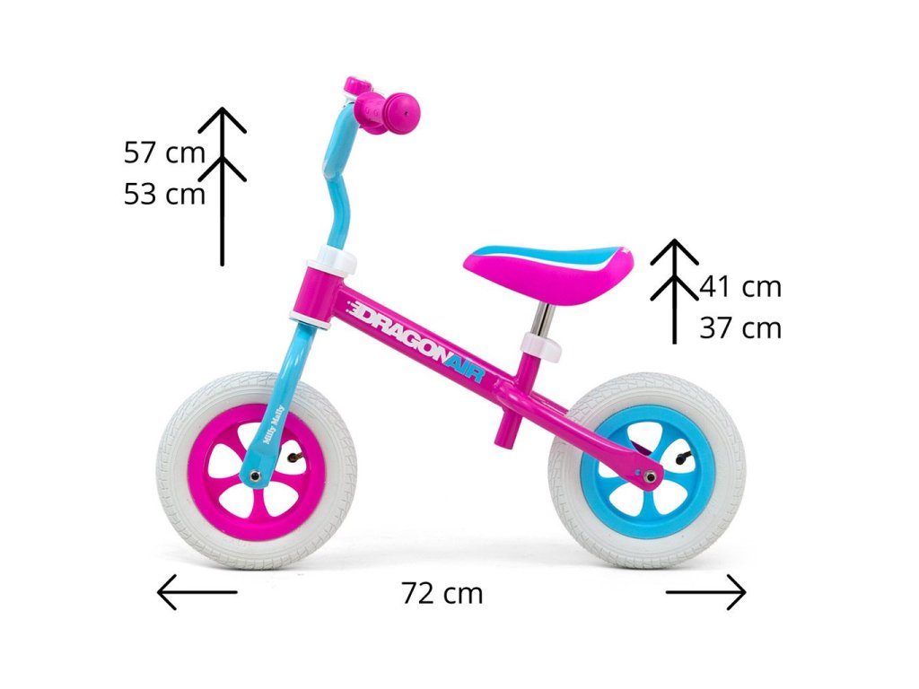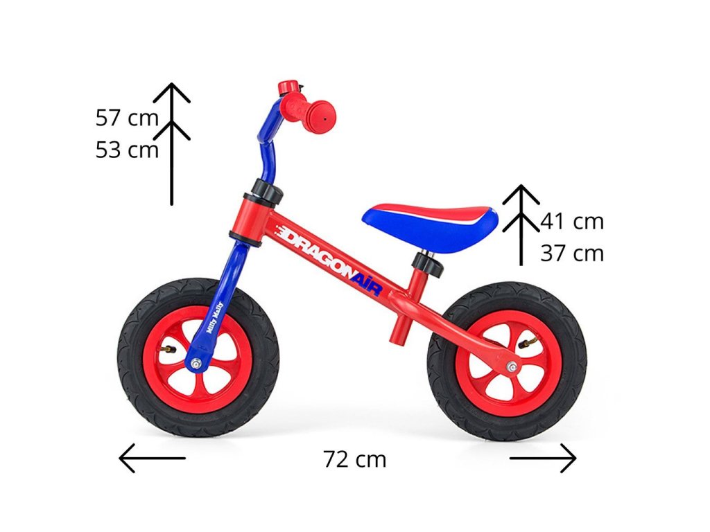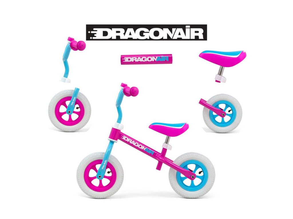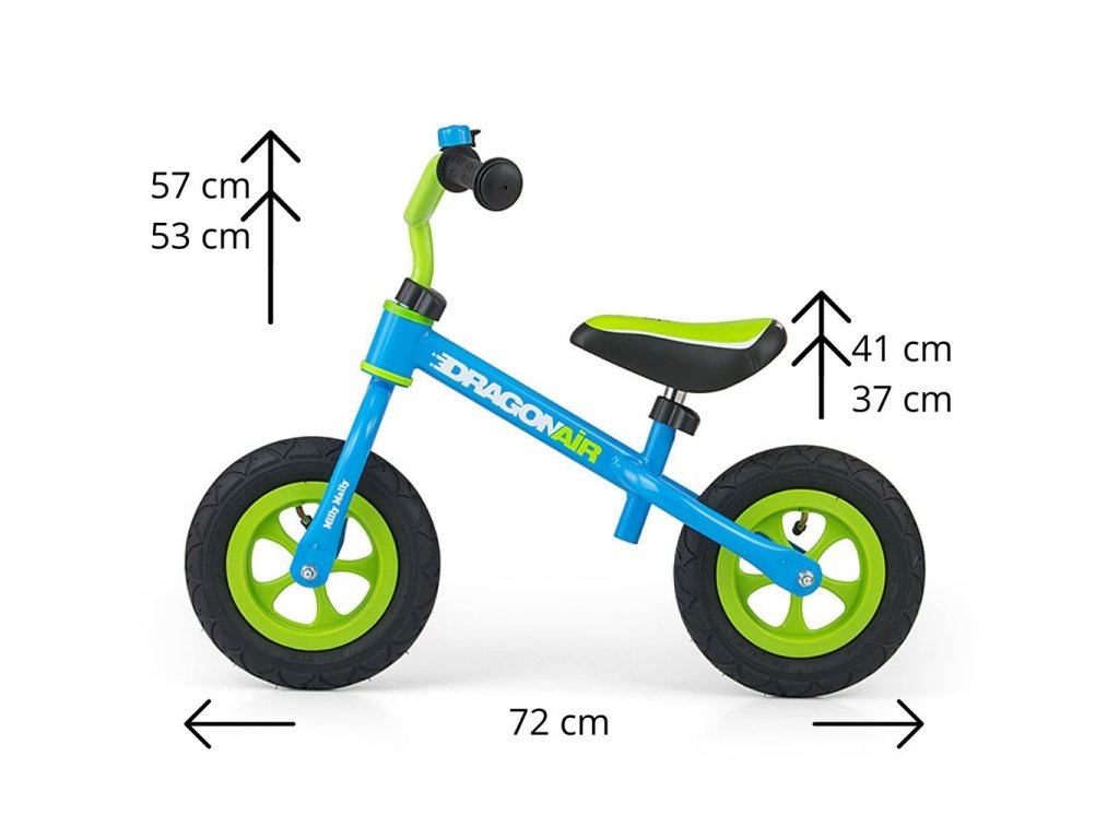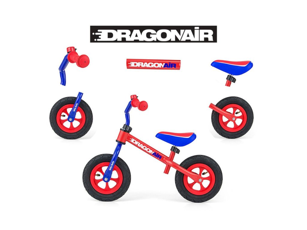 Detské odrážadlo-bicykel Milly Mally DRAGON AIR je ideálne, keď sa dieťa učí udržať rovnováhu. Vďaka širokým nafukovacím gumovým pneumatikám z odolného materiálu zabezpečí stabilitu a bezpečnosť na rôznych povrchoch. Nastaviteľné riadidlá a sedlo zabezpečia, že odrážadlo-bicykel "porastie" s malým cyklistom. Nekĺzavé rukoväte a vhodne profilované sedlo poskytne pohodlie pri objavovaní nových "cyklistických trás".