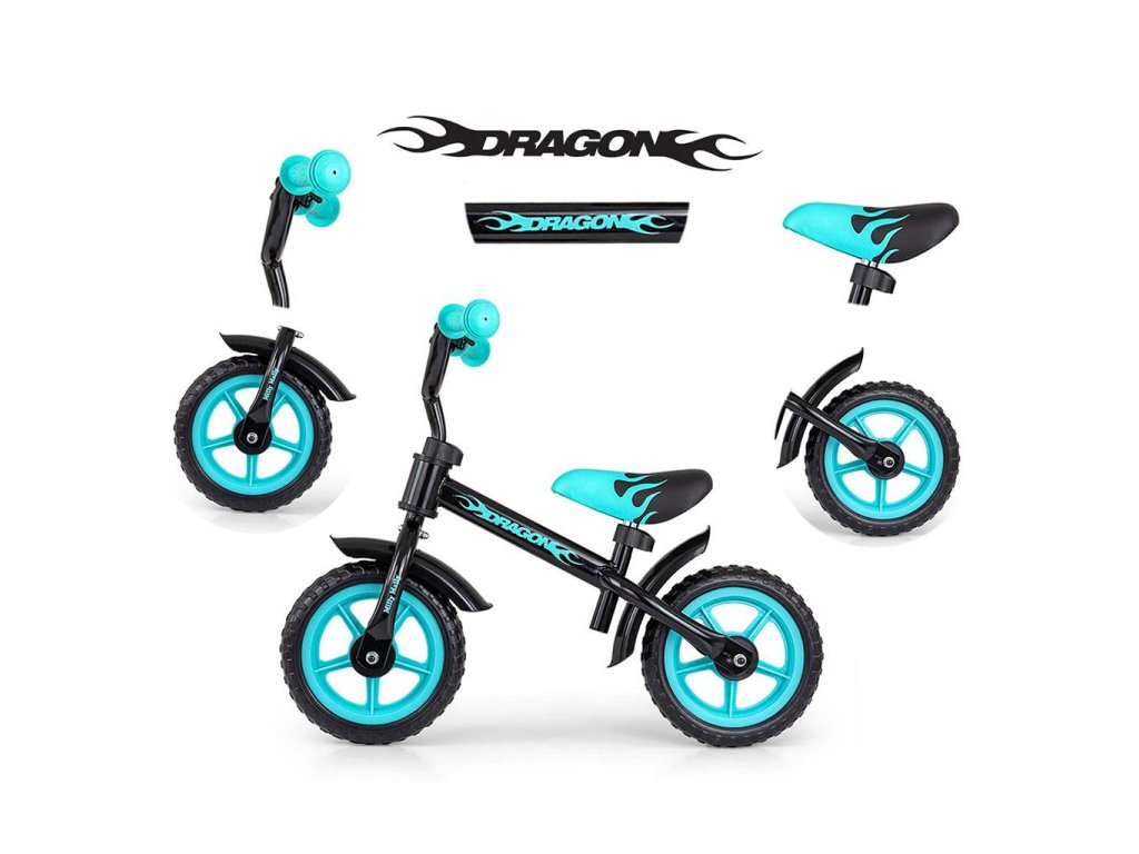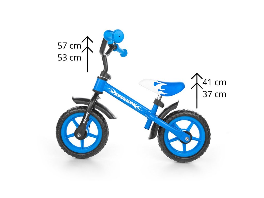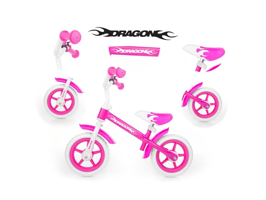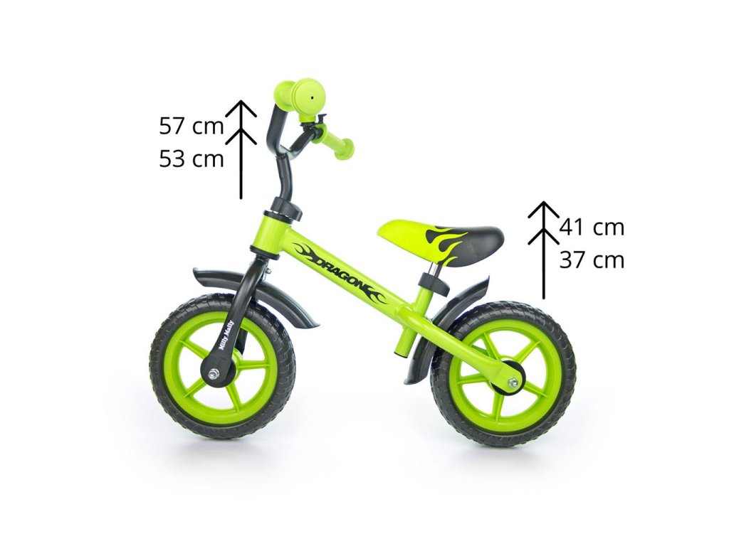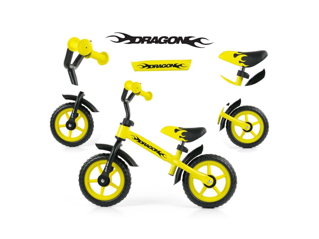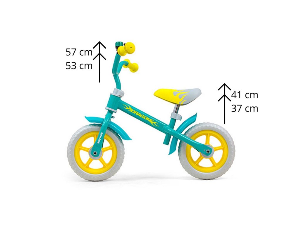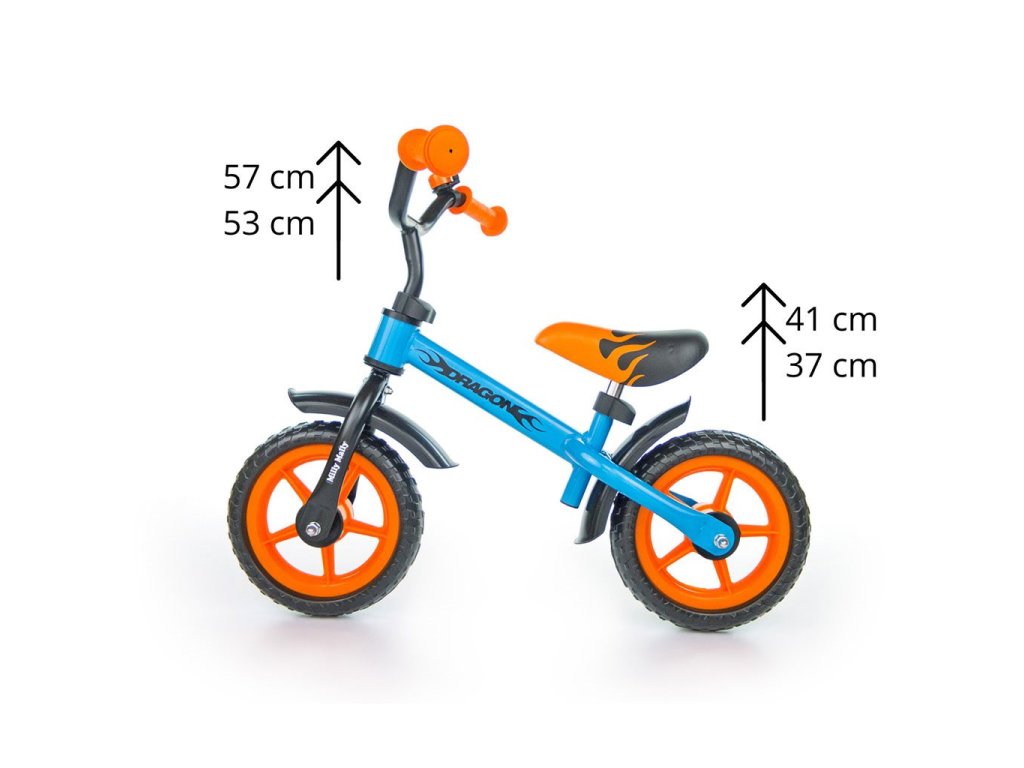 Detské odrážadlo-kolo Milly Mally Dragon je ideálne, keď sa dieťa učí udržať rovnováhu. Je tou najlepšou alternatívou pre bicykel s bočnými kolieskami, takže neskoršie jazda na klasickom bicykli bude oveľa jednoduchšia. Bicykel je bez pedálov, vďaka čomu sa dieťa dokáže sústrediť hlavne na držanie rovnováhy a smer jazdy.
