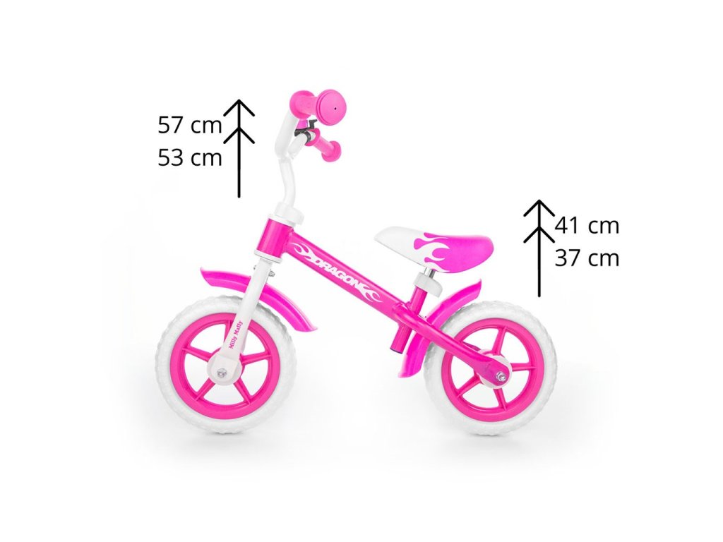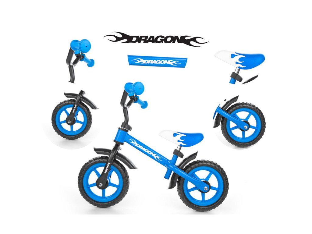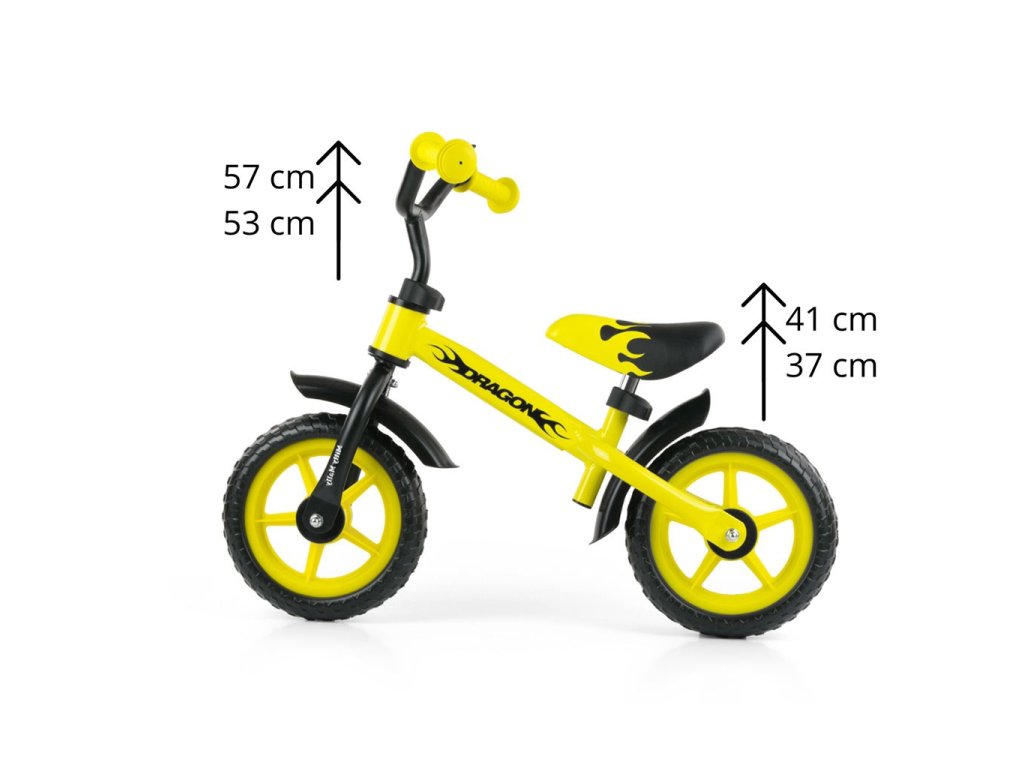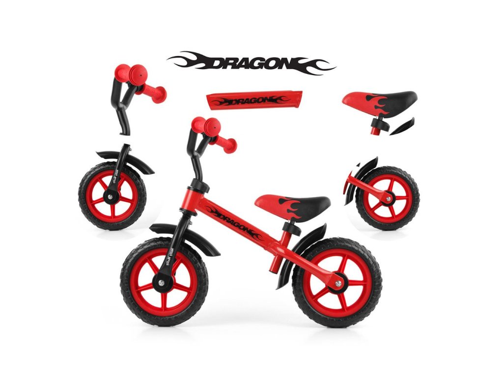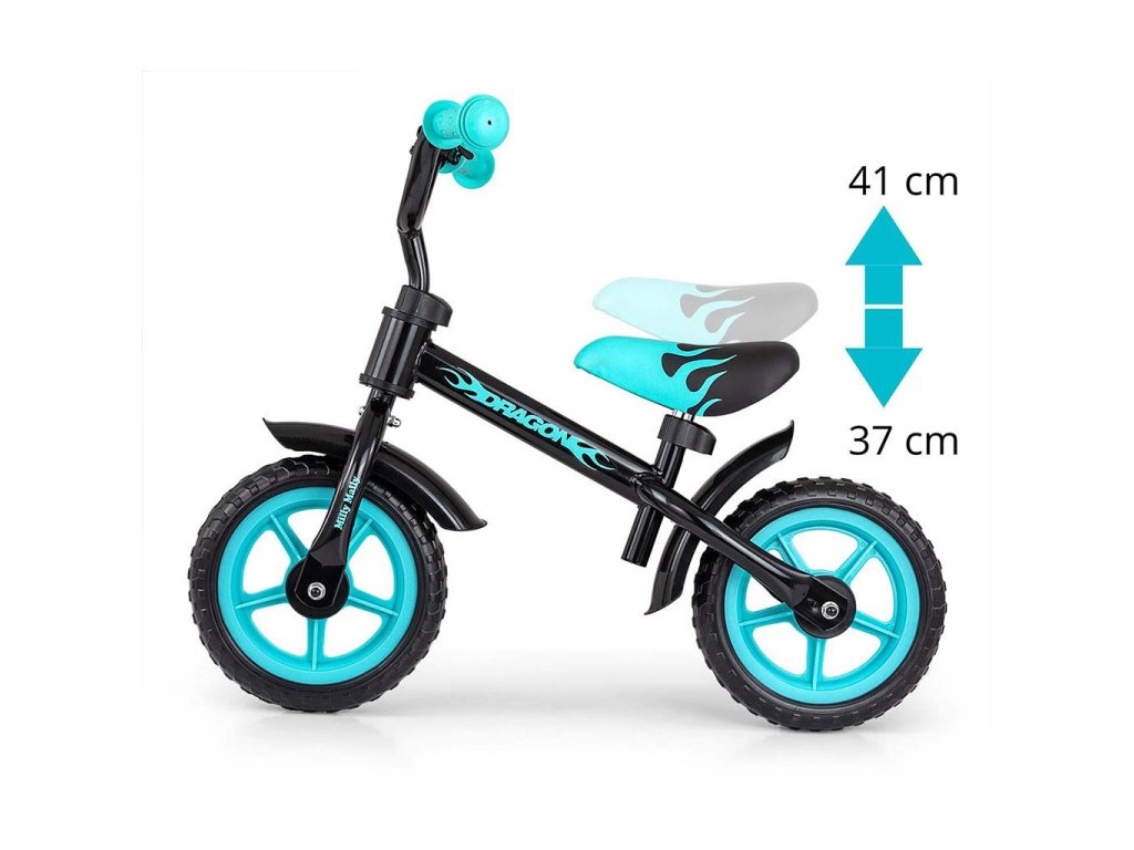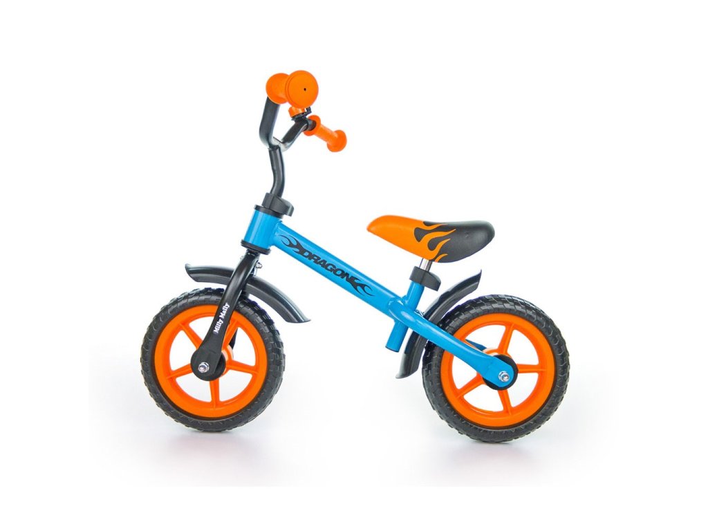 Detské odrážadlo-kolo Milly Mally Dragon je ideálne, keď sa dieťa učí udržať rovnováhu. Je tou najlepšou alternatívou pre bicykel s bočnými kolieskami, takže neskoršie jazda na klasickom bicykli bude oveľa jednoduchšia. Bicykel je bez pedálov, vďaka čomu sa dieťa dokáže sústrediť hlavne na držanie rovnováhy a smer jazdy.
