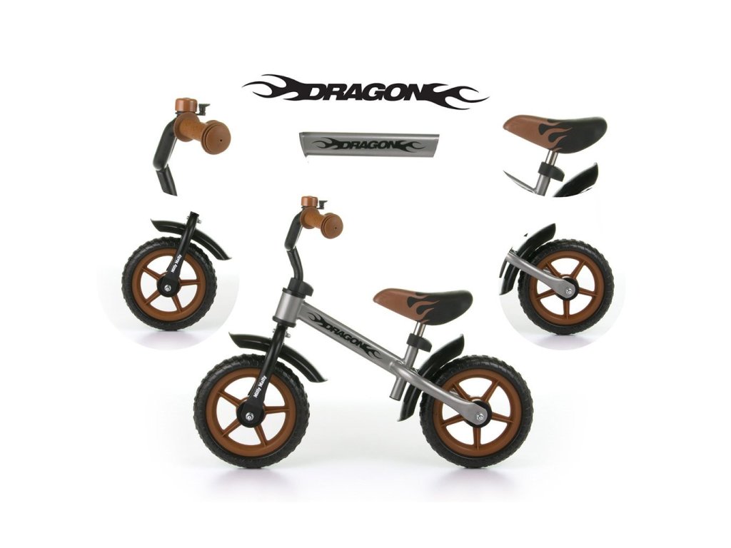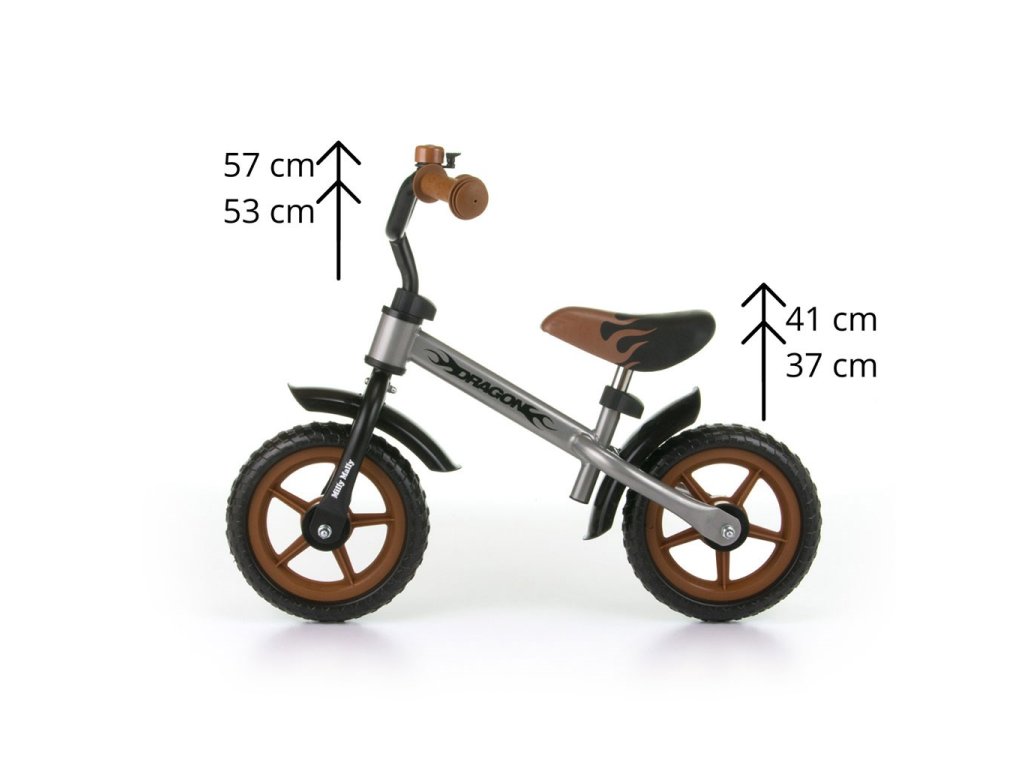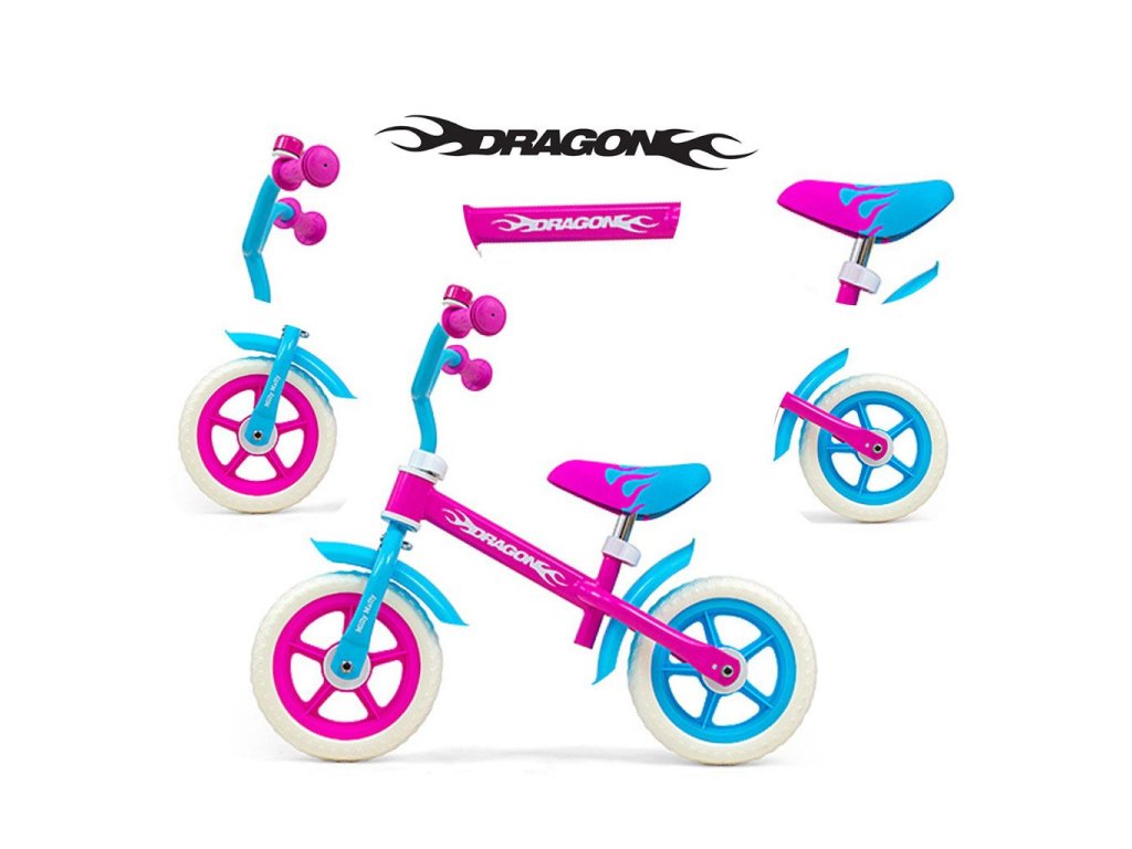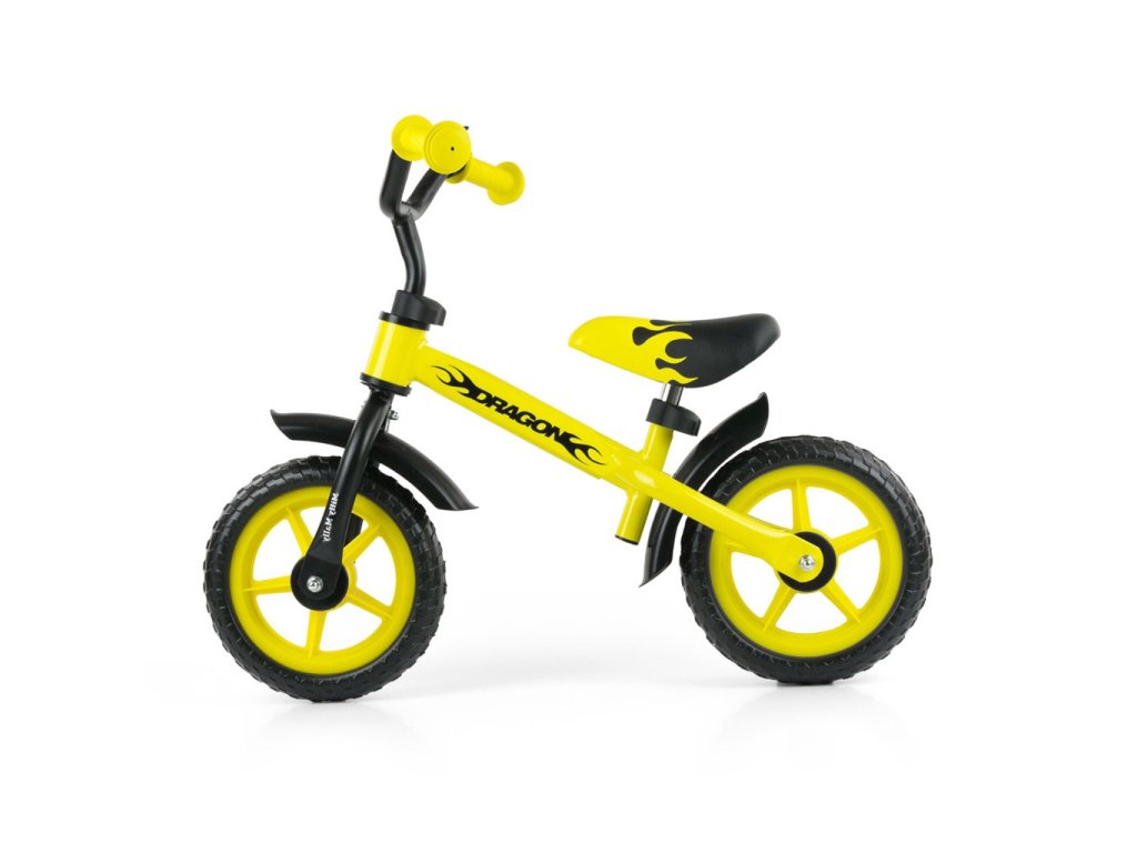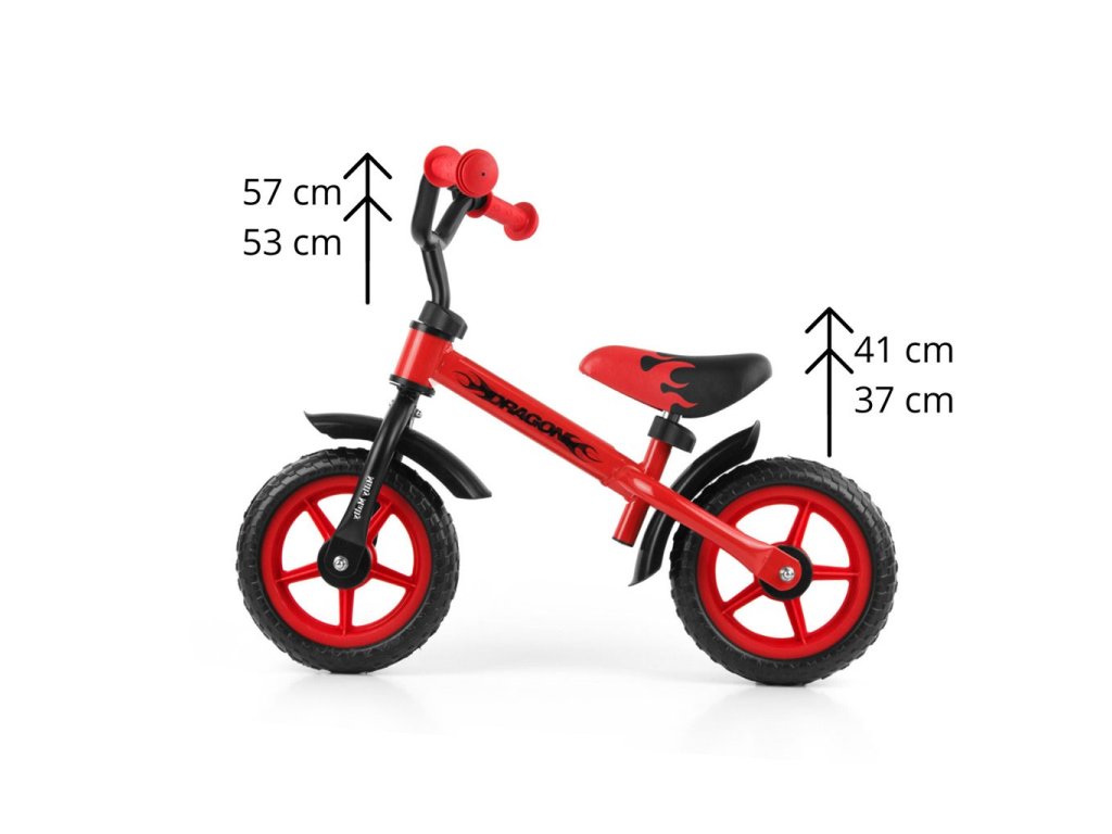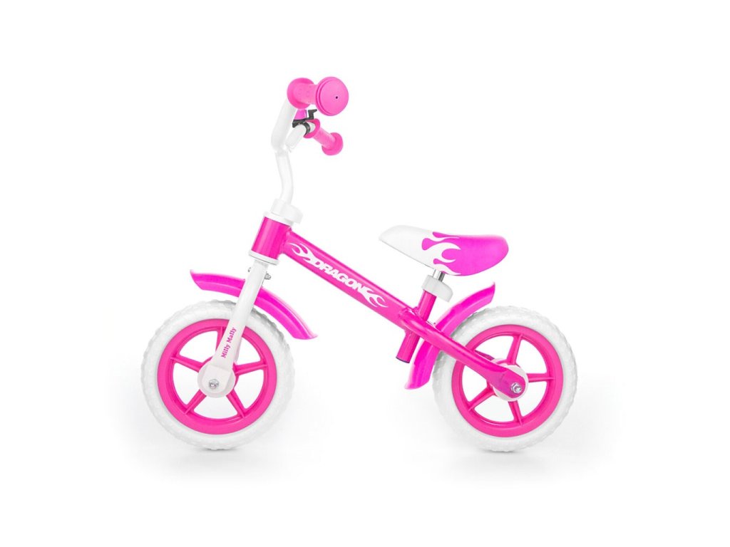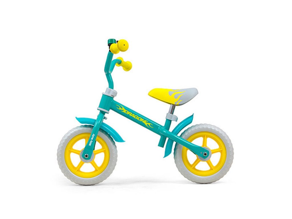 Detské odrážadlo-kolo Milly Mally Dragon je ideálne, keď sa dieťa učí udržať rovnováhu. Je tou najlepšou alternatívou pre bicykel s bočnými kolieskami, takže neskoršie jazda na klasickom bicykli bude oveľa jednoduchšia. Bicykel je bez pedálov, vďaka čomu sa dieťa dokáže sústrediť hlavne na držanie rovnováhy a smer jazdy.