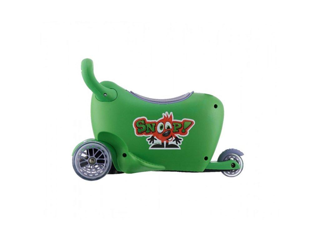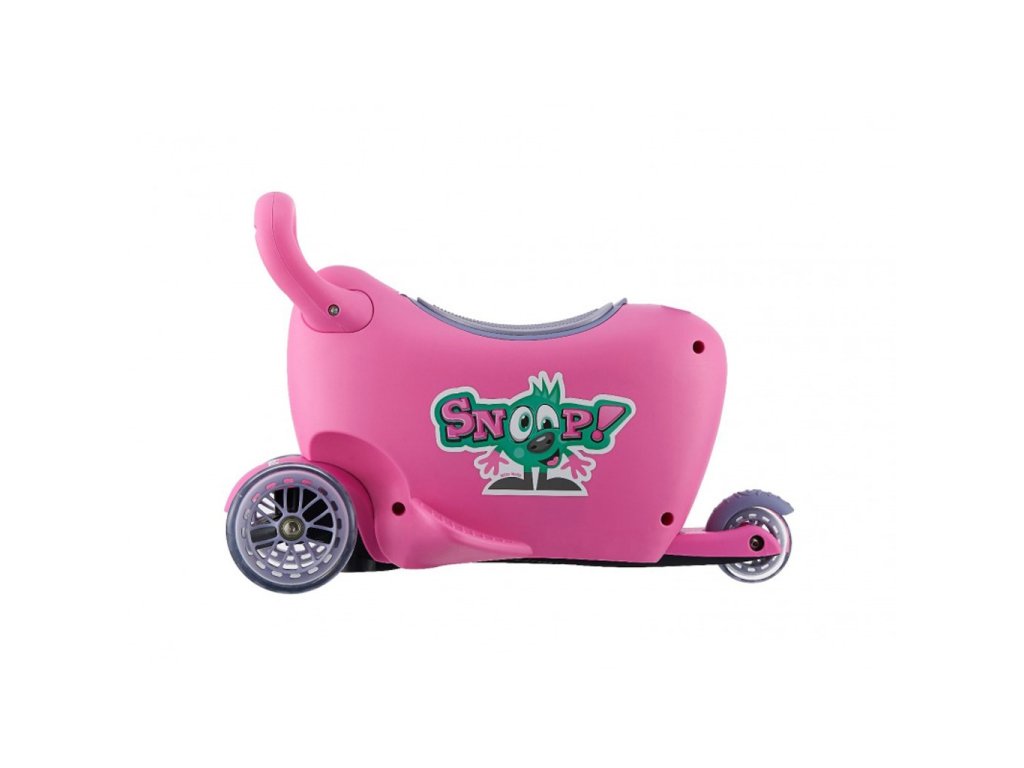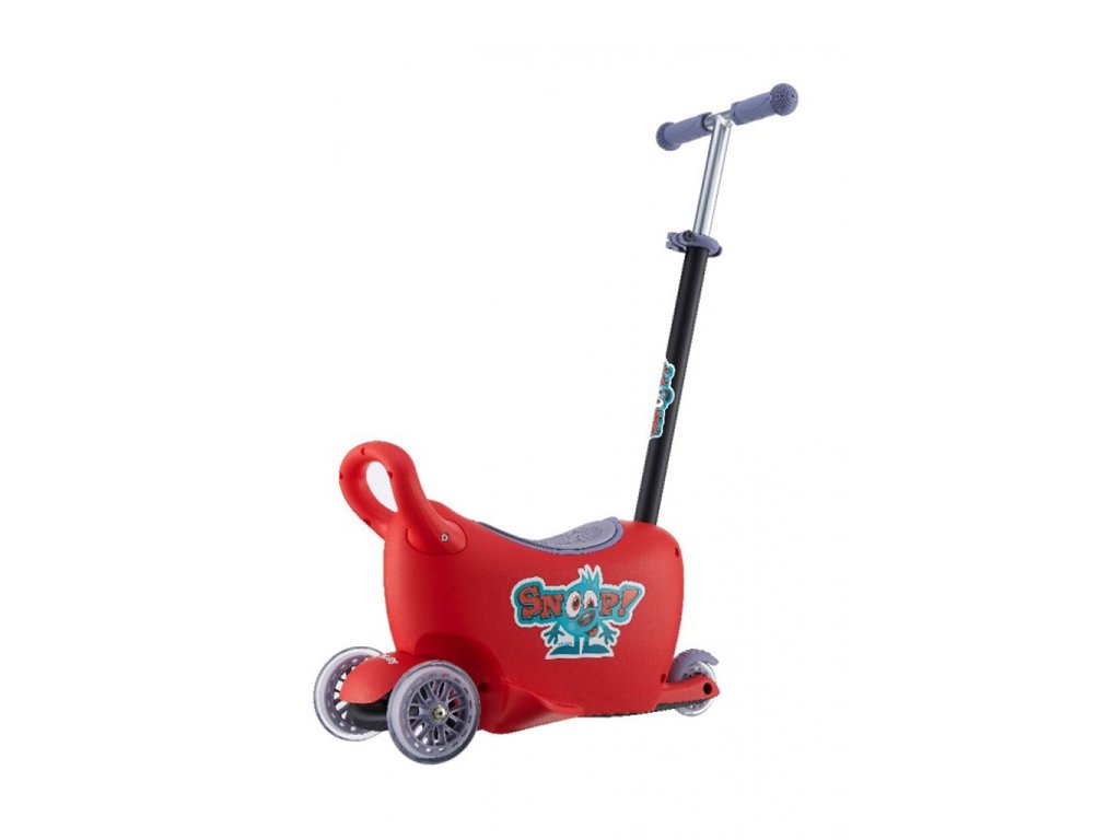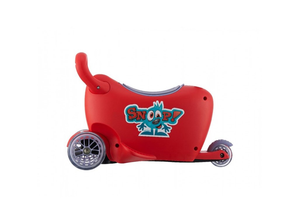 Detské odrážadlo s vodiacou tyčou Snoop 3v1 Milly Mally. Snoop je nielen moderný s výrazným dizajnom, ale aj kombinovaný s praktickým využitím. Od 18. mesiaca dieťa používa Snoop, kde len sedí, drží sa rukoväte na hornej časti sedadla, ale je riadené rodičom vodiacou tyčou. Mäkké sedadlo a profilovaná nožná opora poskytuje pohodlie. Akonáhle sa dieťa bude odrážať samo, môžete vodiacu tyč odpojiť a odrážadlo sa zmení na auto. Tretia funkcia je určená deťom od 36 mesiacov, kedy ľahko odpojíme sedadlo a vrátime vodiacu tyč, ktorú sme použili pri prvej funkcii Snoop, tentokrát sa stane volantom pre skúter-kolobežku. Sedadlo možno úplne odpojiť a dieťa ho môže doma použiť ako cestovný kufrík pri nosení obľúbených hračiek, pasteliek, blokov alebo knižiek.