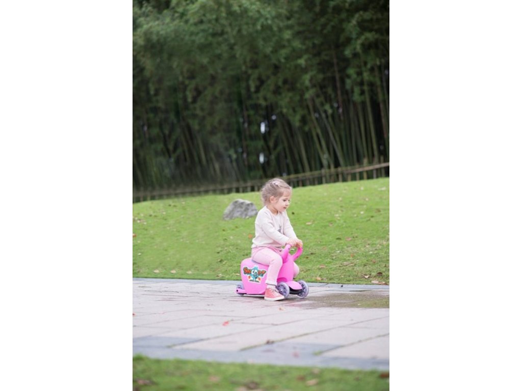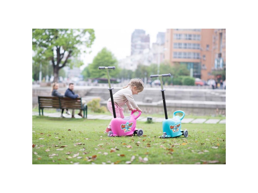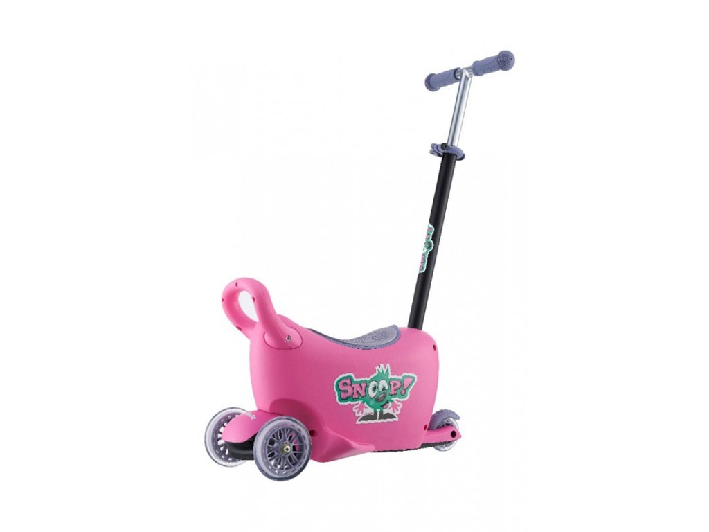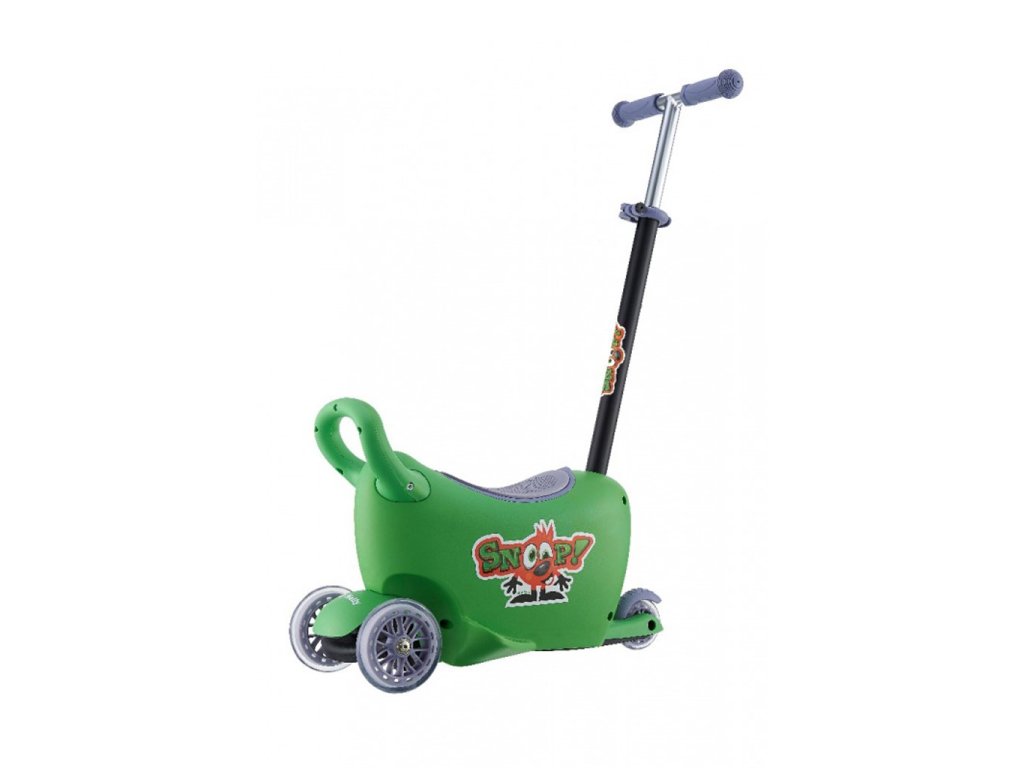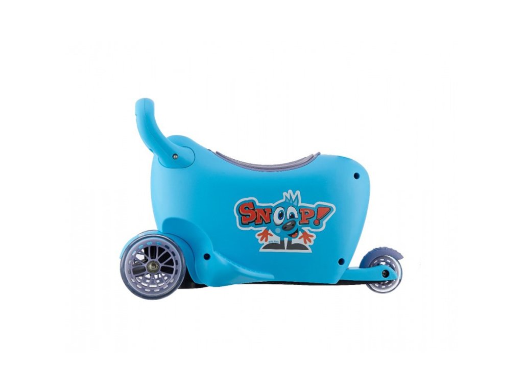 Detské odrážadlo s vodiacou tyčou Snoop 3v1 Milly Mally. Snoop je nielen moderný s výrazným dizajnom, ale aj kombinovaný s praktickým využitím. Od 18. mesiaca dieťa používa Snoop, kde len sedí, drží sa rukoväte na hornej časti sedadla, ale je riadené rodičom vodiacou tyčou. Mäkké sedadlo a profilovaná nožná opora poskytuje pohodlie. Akonáhle sa dieťa bude odrážať samo, môžete vodiacu tyč odpojiť a odrážadlo sa zmení na auto. Tretia funkcia je určená deťom od 36 mesiacov, kedy ľahko odpojíme sedadlo a vrátime vodiacu tyč, ktorú sme použili pri prvej funkcii Snoop, tentokrát sa stane volantom pre skúter-kolobežku. Sedadlo možno úplne odpojiť a dieťa ho môže doma použiť ako cestovný kufrík pri nosení obľúbených hračiek, pasteliek, blokov alebo knižiek.