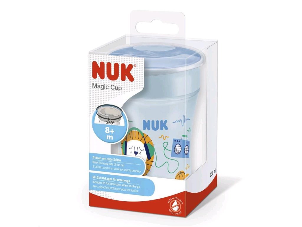 Detský hrnček Magic NUK 360 ° s viečkom. Revolučný uzáver umožňuje piť bez náustku či slamky z každej strany, vďaka čomu sa dieťa učí samo piť ako z normálneho hrnčeka. Neobsahuje BPA. Charakteristika: