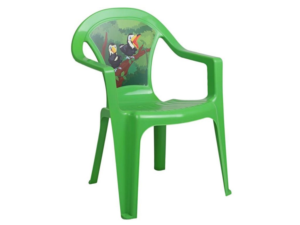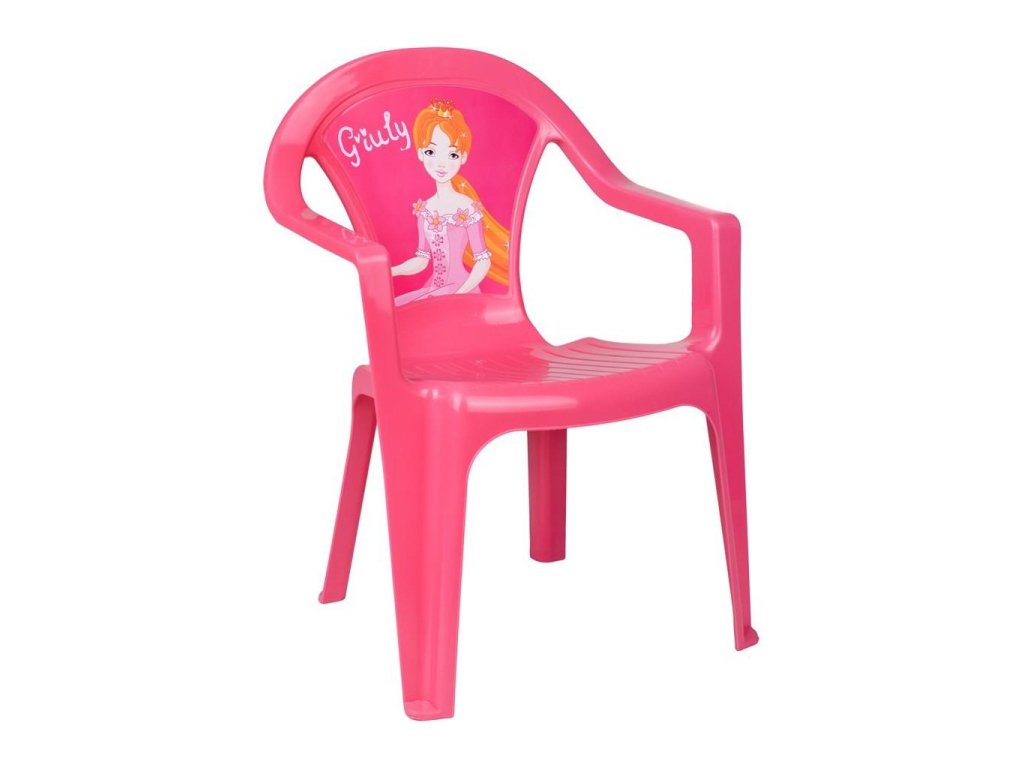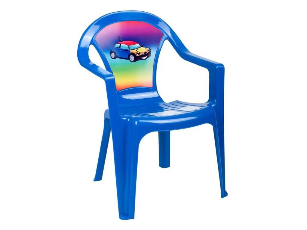 Detská plastová záhradná stolička vo veselých farbách s obrázkom. Rozmery: cca 37x39x51 cm, nosnosť 40 kg. Obrázky sa líšia podľa aktuálnej ponuky.