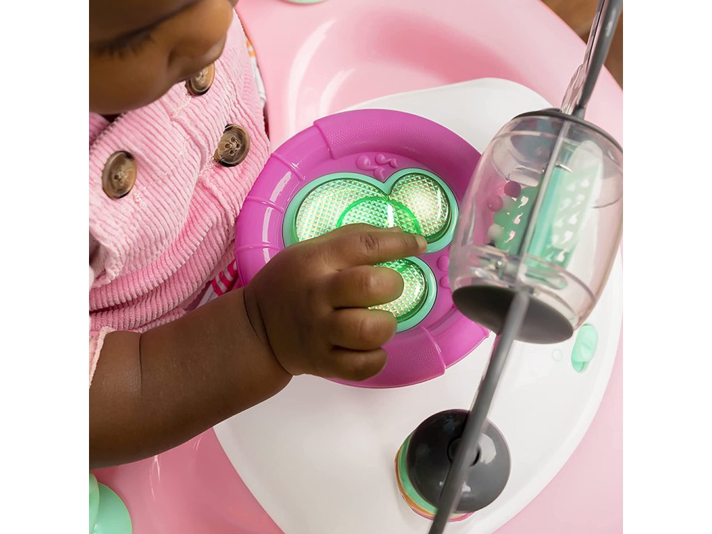 Odnímateľný hrací pult obsahuje hračky s aktivitami, ktoré dieťatku pomáhajú rozvíjať motorické zručnosti. Poskytuje tak aj zábavu počas hier na podlahe. Volant aktivuje svetlá a zábavné zvuky. Vysoké zadné operadlo poskytuje mimoriadnu podporu pre dieťatko. Chodítko je možné nastaviť do 3 výškových polôh, čím sa prispôsobuje rastu dieťatka.