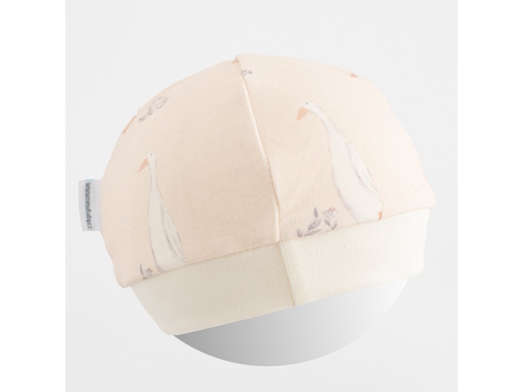 Krásna a praktická bavlnená dojčenská čiapočka New Baby Husičky. Krásny detský motív s roztomilými husičkami, polahodí detským očkám. Čiapka má široký, pružný sťahovací lem, ktorý netlačí a bude dobre držať na hlavičke miminka. Je veľmi kvalitná, príjemná, mäkká, elastická, a preto je veľmi vhodná pre všetky miminka. Zloženie: 100% bavlna. OEKO-TEX STANDARD 100.