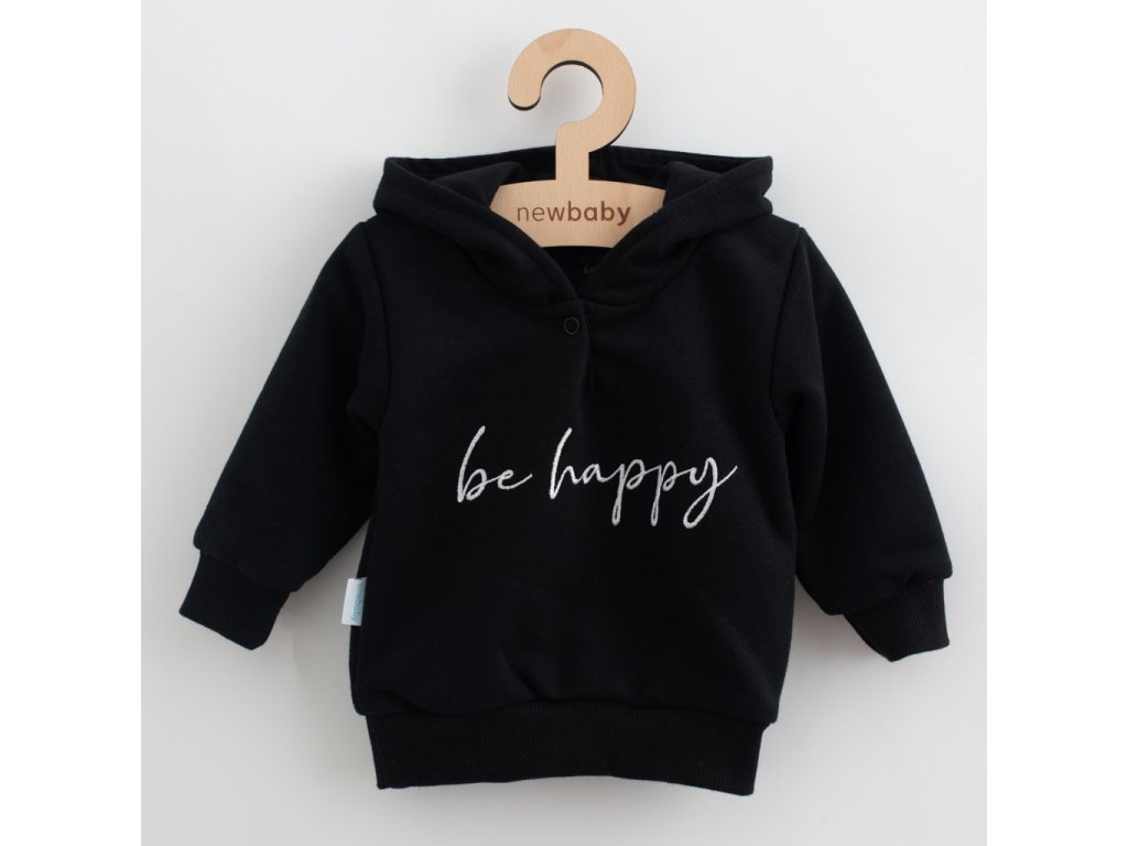 Štýlová a praktická detská mikinka New Baby Be Happy. Mikinka s kapucňou má zapínanie na cvoček pod krčkom, pružný lem v páse a na rukávoch a je zdobená výšivkou so štýlovým nápisom be happy. Výšivka je z vnútornej strany podlepená proti poškriabaniu. Mikina je vhodná pre dievčatká aj chlapčekov. Zloženie: 96% bavlna, 4% elastan.