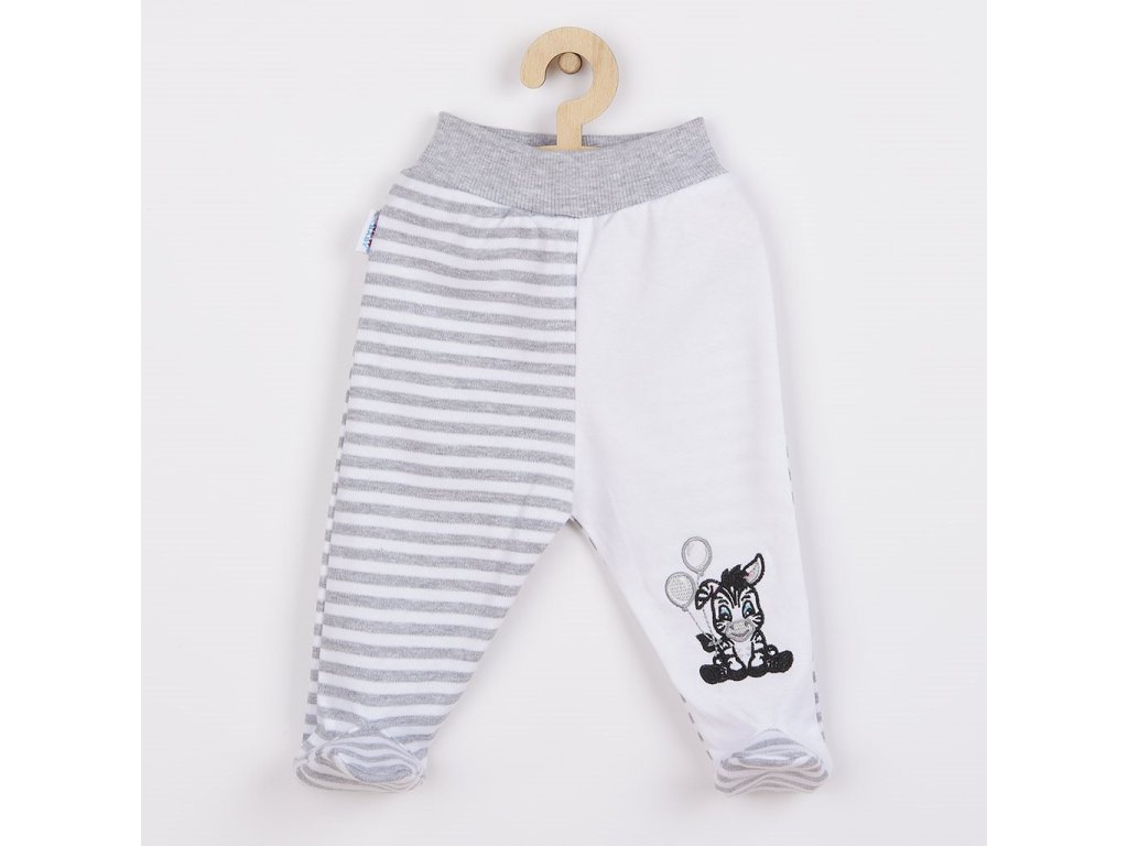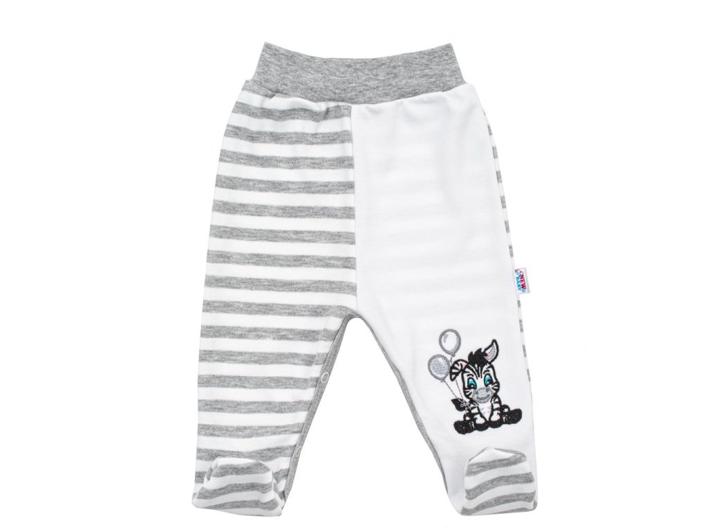 Bavlnené polodupačky New Baby Zebra exclusive pre bábätká. Polodupačky sú zdobené vyšitým obrázkom roztomilej zebry, ktorý je podlepený látkou a modernými pruhmi. V páse majú široký pružný lem. Zapínanie na cvočky medzi nožičkami. Zloženie: 100% bavlna.