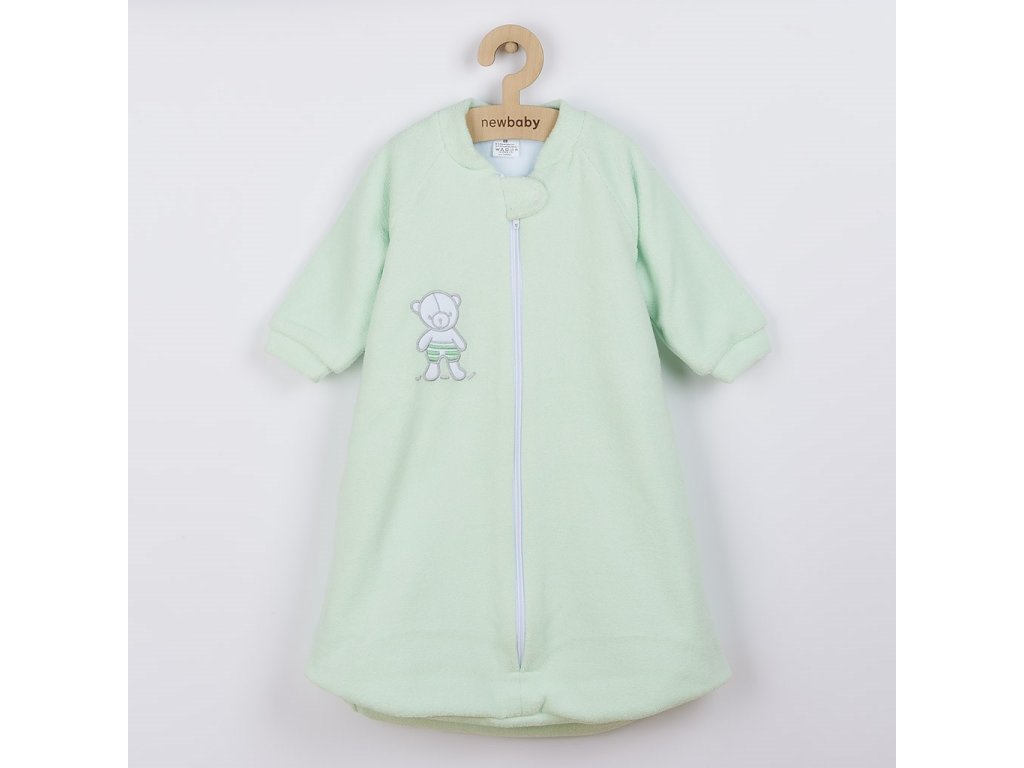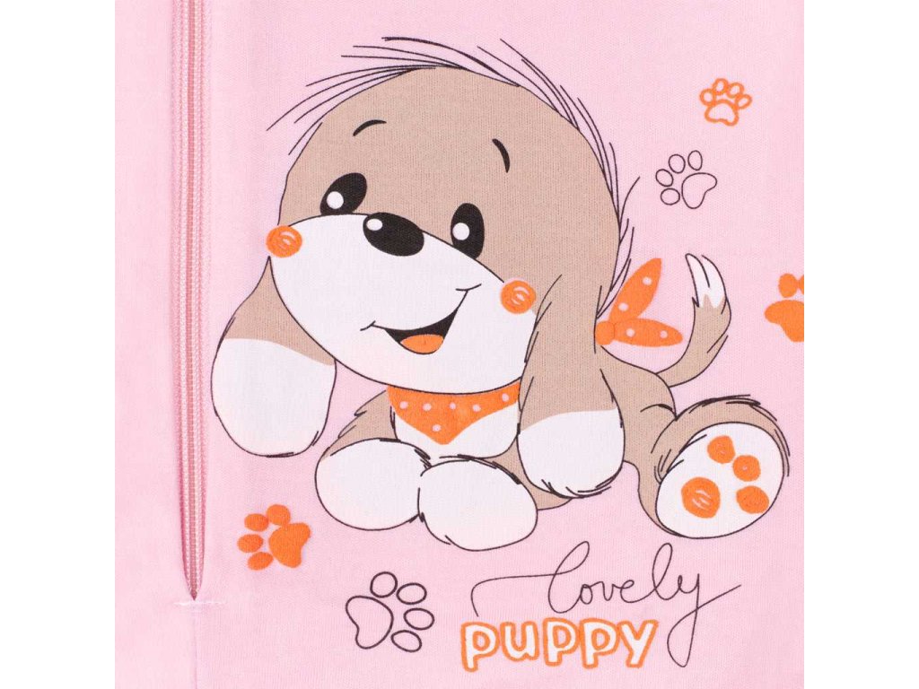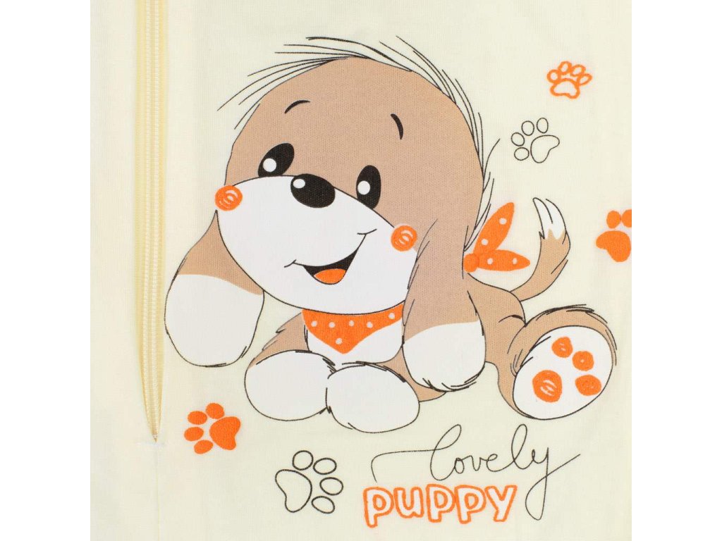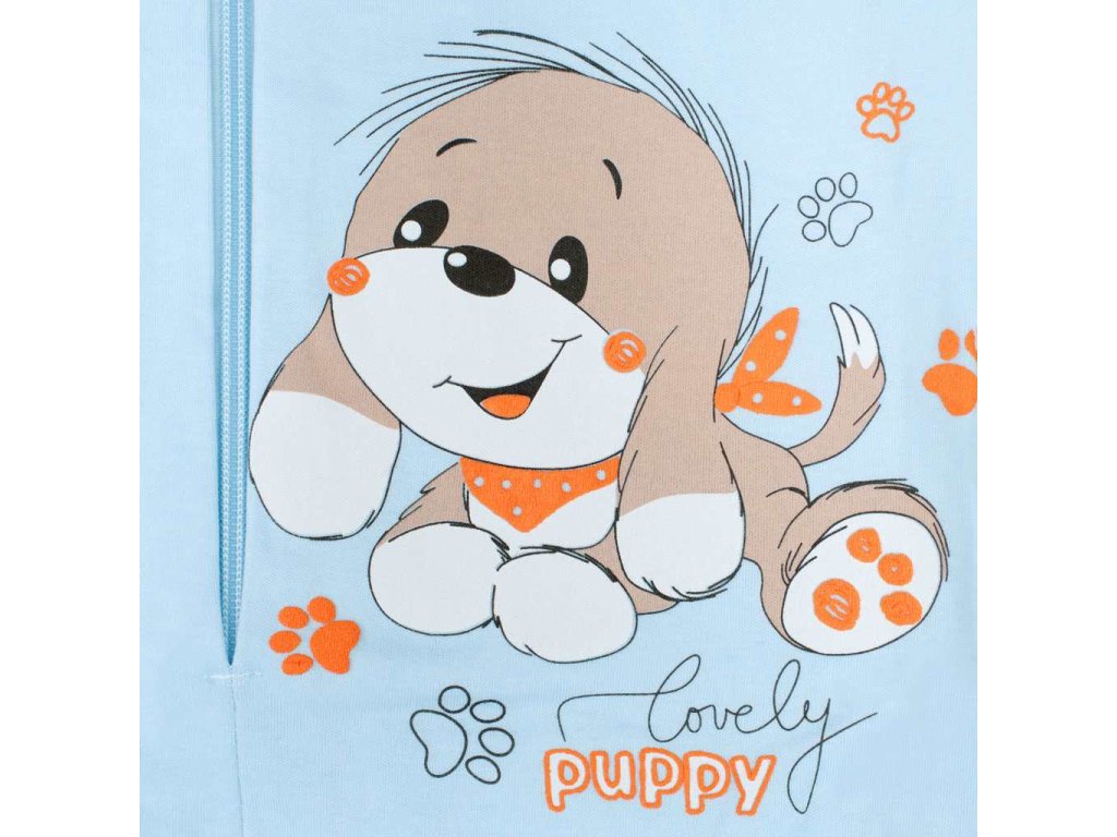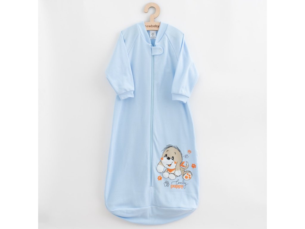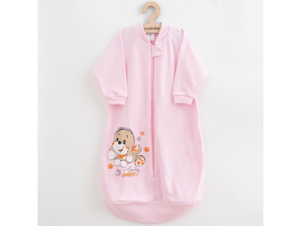 Bavlnený dojčenský spací vak New Baby pre bábätká v krásnej pastelovej farbe s veselým obrázkom psíka. Spací vak je vhodný pre bábätká už od narodenia pre svoju jemnosť a mäkkosť. Praktické zapínanie na zips po celej dĺžke. Zloženie: 100% bavlna.