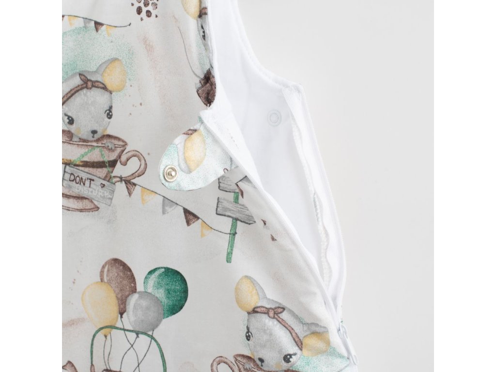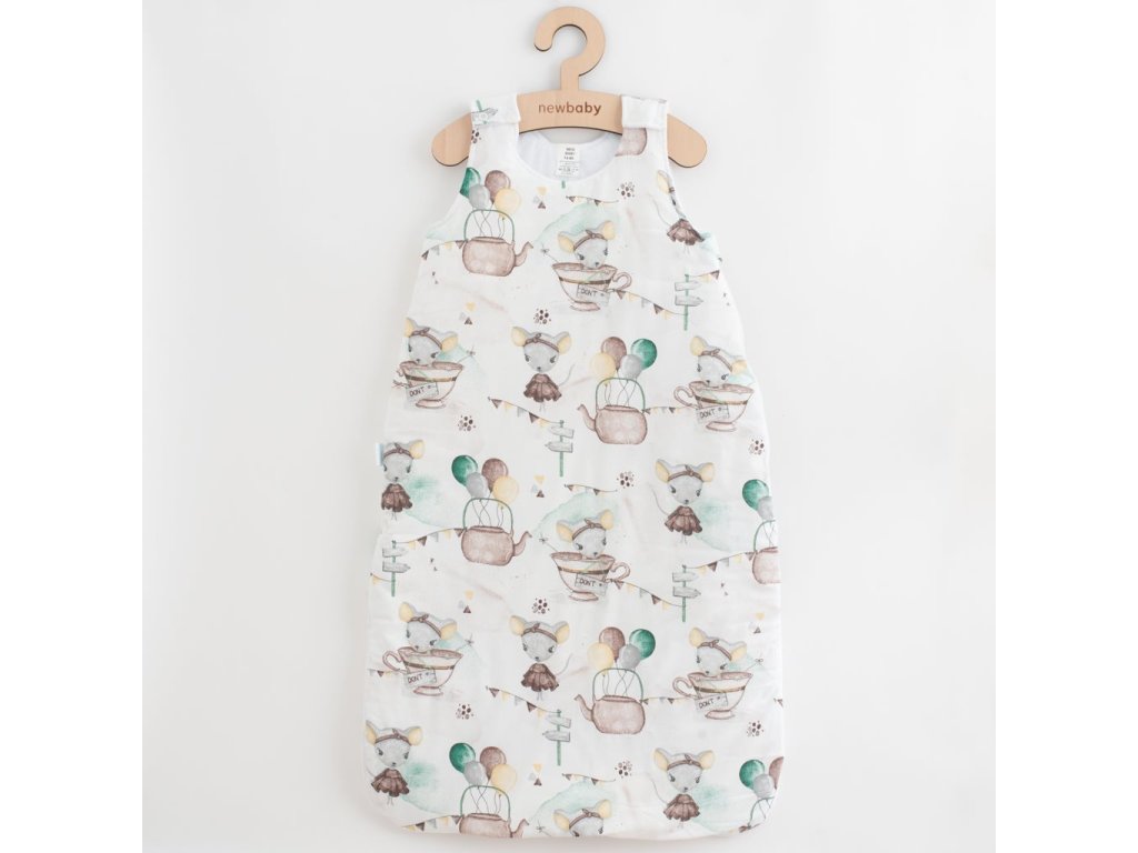 Praktický bavlnený dojčenský spací vak s výplňou New Baby Mouse Mia pre bábätká. Spací vak je vhodný pre bábätká už od narodenia pre svoju jemnosť, mäkkosť, praktickosť a zaručí vášmu bábätku príjemné teplo. Zapínanie na cvočky na ramienkach a na zips po celej dĺžke veľmi uľahčí obliekanie a prebaľovanie. Zips je v hornej časti zakrytý, čo je veľmi praktické a bráni poškriabaniu. Spací vak je vyrobený z veľmi príjemného bavlneného materiálu, ktorý je vyplnený polyesterovým vláknom. Zloženie: 100% bavlna, výplň: 100% polyester.