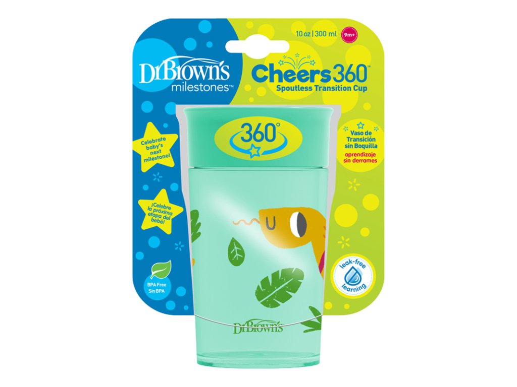 Nastal čas na zmenu z hrnčeka pre bábätko na hrnček pre väčšie dieťa? Cheers 360-stupňový výučbový hrnček umožňuje piť z celého obvodu pohára bez toho, aby sa z neho vylialo.