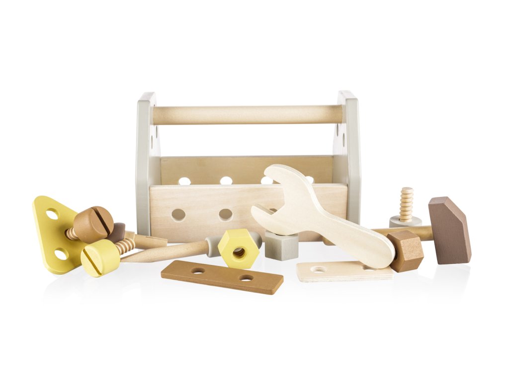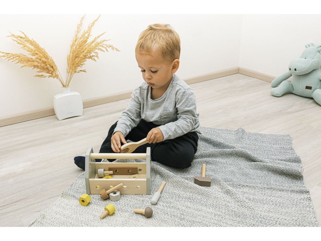 Drevená sada náradia pre malých zvedavých staviteľov.