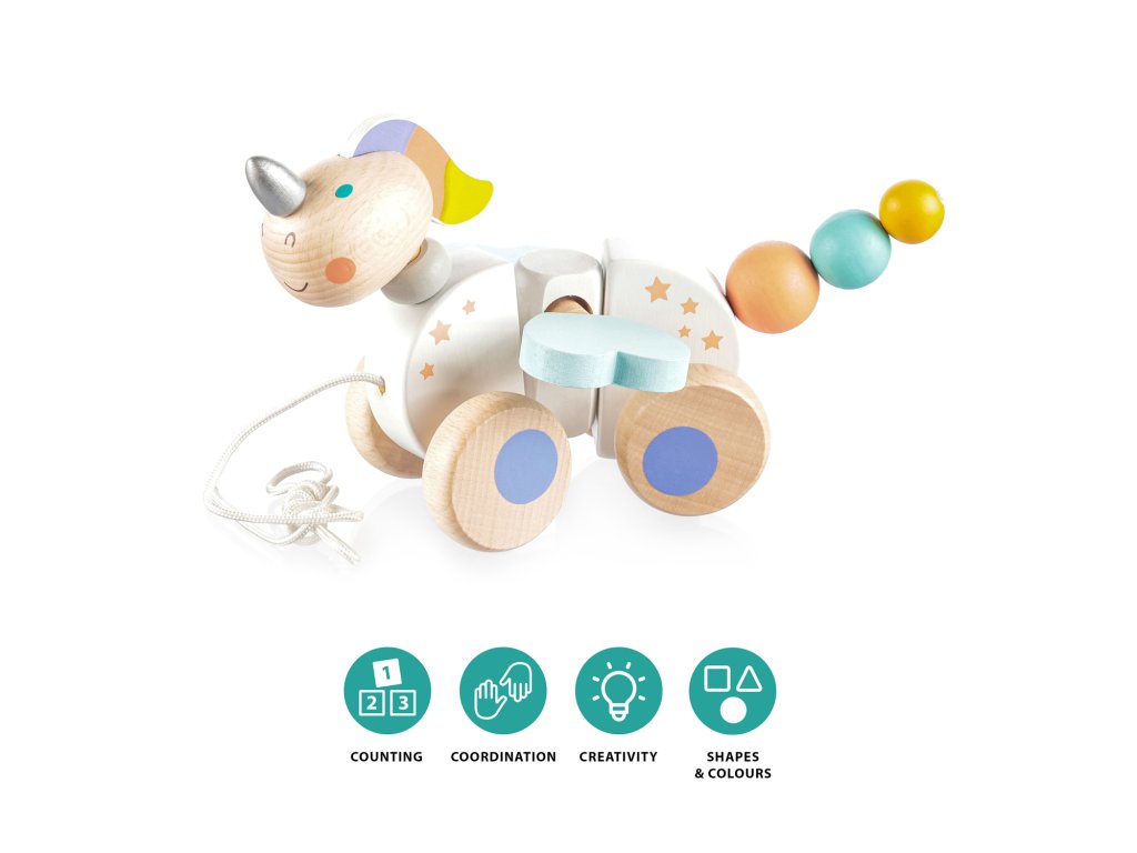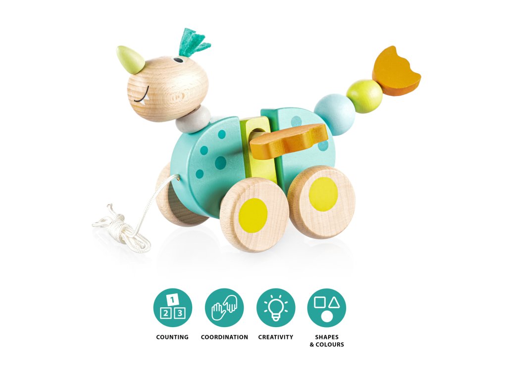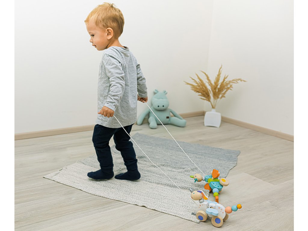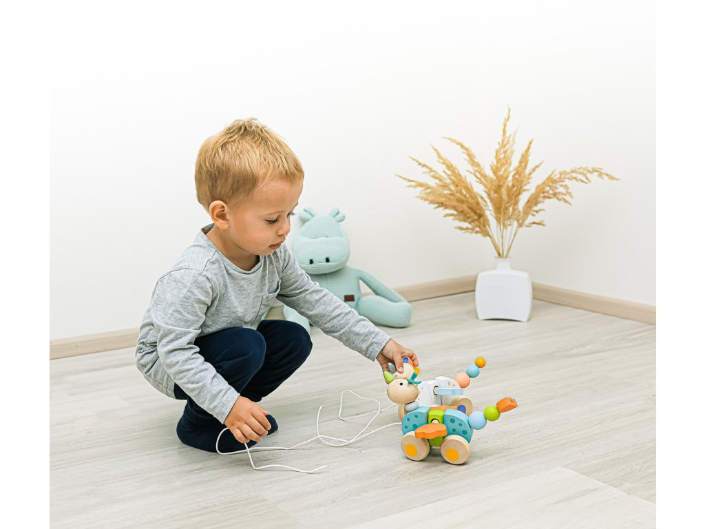 Drevený ťahací drak pre motiváciu k chôdzi. Vhodné pre deti od 16 mesiacov.