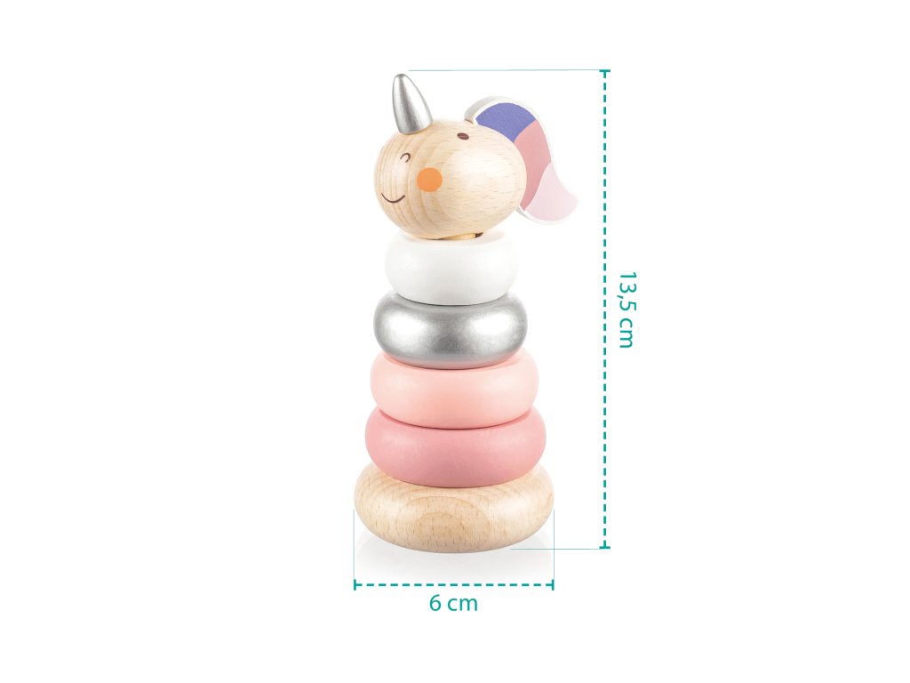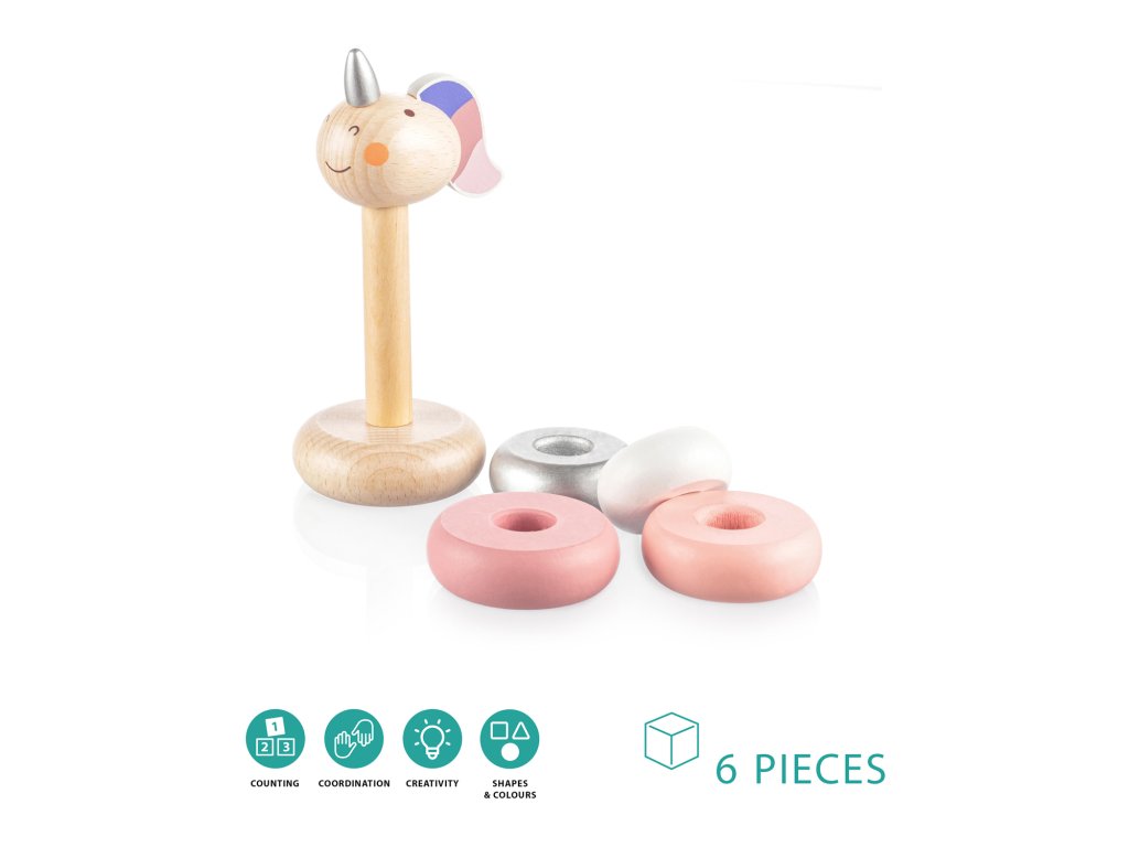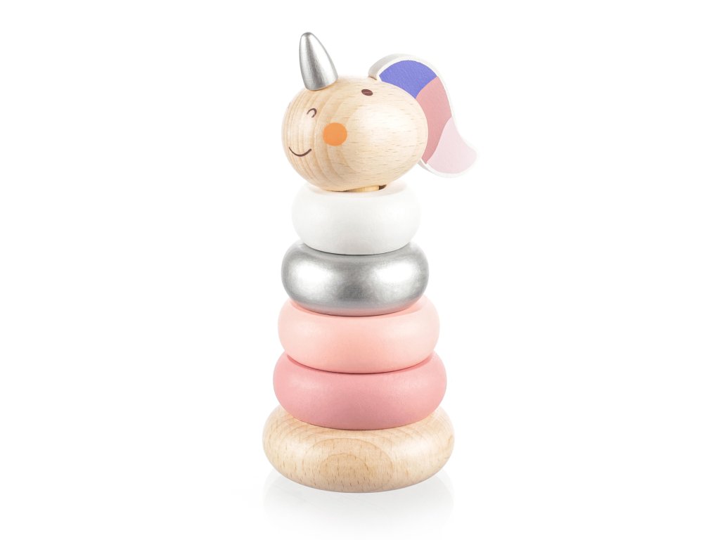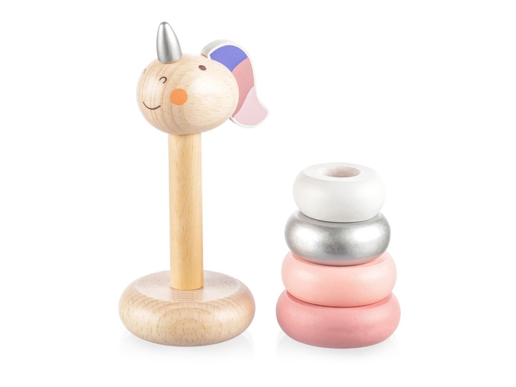 Drevené jednorožcové krúžky pre deti od 16 mesiacov.