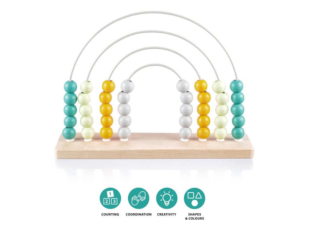Učenie by malo byť zábavné. Zoznámte svoje dieťa so základmi počítania pomocou roztomilého dúhového počítadla. Je vyrobený z farebných kovových oblúkov a odolného dreveného podstavca.
