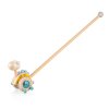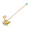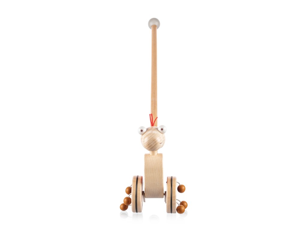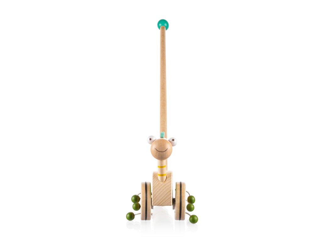 Jazdec na tyči je ideálna hračka pre deti, ktoré začínajú chodiť. Zábavný dinosaurus na dlhej tyči sa pri pohybe otáča a vďaka dreveným korálkam pripevneným ku kolieskam vydáva zvuk, ktorý dieťa láka k chôdzi a zabaví ho na celé hodiny. Robustná tyč slúži aj ako opora pri prvých krôčikoch dieťaťa a na konci je vybavená drevenou guľou pre väčšiu bezpečnosť. Posuvník nemá ostré hrany a je vyrobený z odolného dreva s dlhou životnosťou.