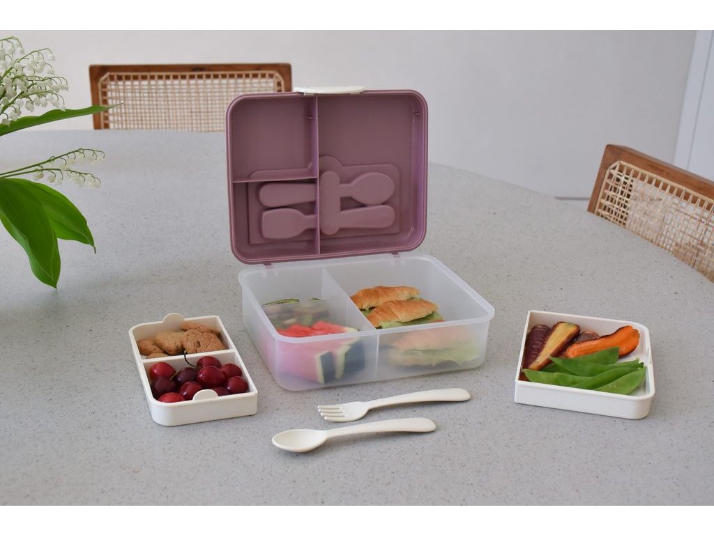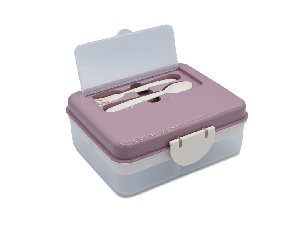 - Součástí je integrovaná lžíce a vidlička s vlastním víčkem