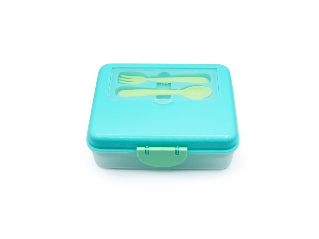 - Součástí je integrovaná lžíce a vidlička s vlastním víčkem