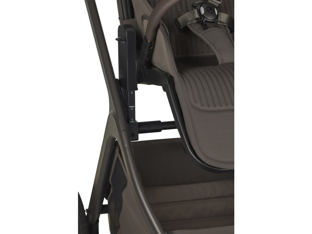 - Nastaviteľná výška sedadla vďaka integrovanému výškovému adaptéru, možnosť nastavenia výšky na troch úrovniach a vaničky na kočíku