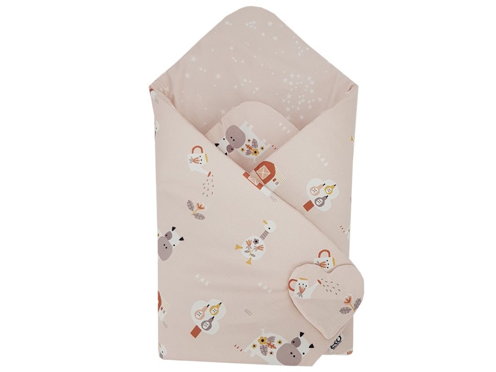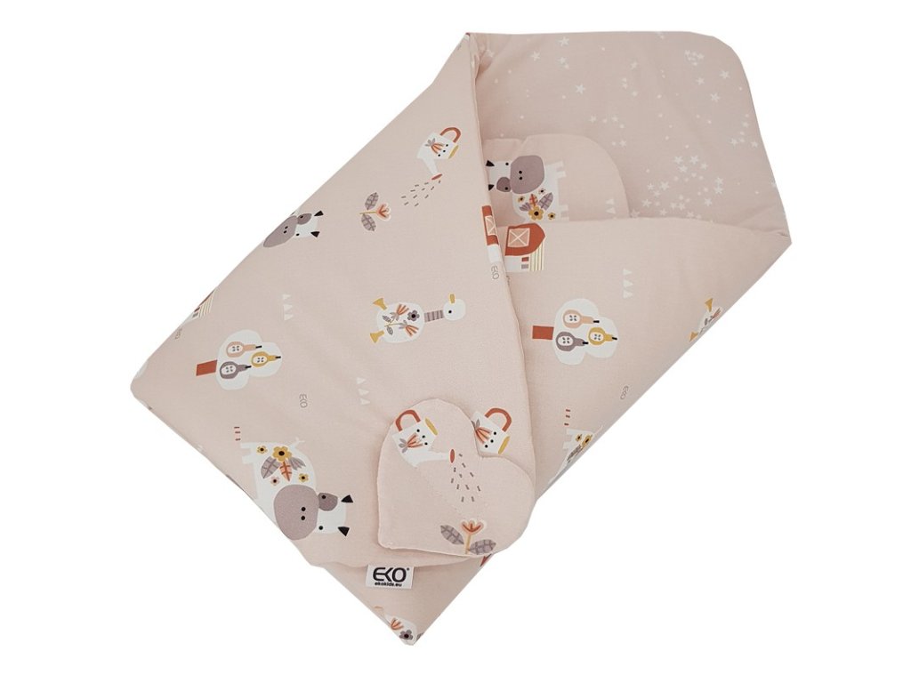 EKO Zavinovačka bavlnená obojstranná My farm Powder pink 75x75 cm
