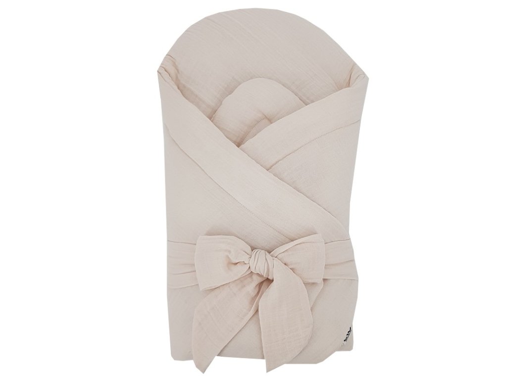 EKO Zavinovačka mušelínová s kokosovou vyberateľnou vložkou a mašľou Beige 75x75 cm