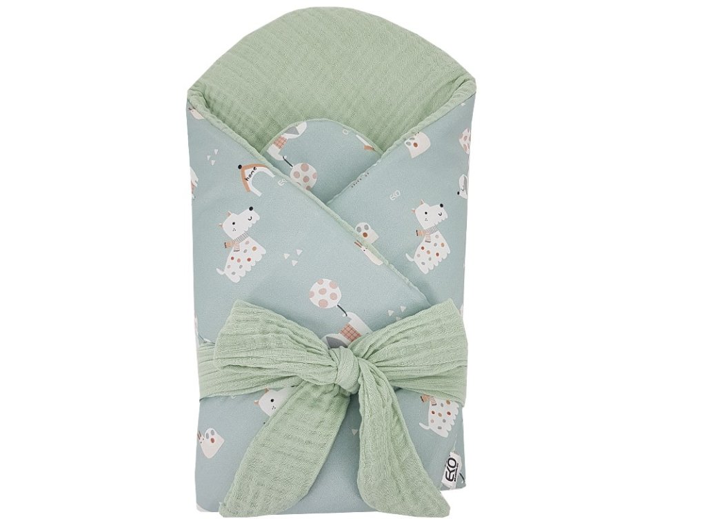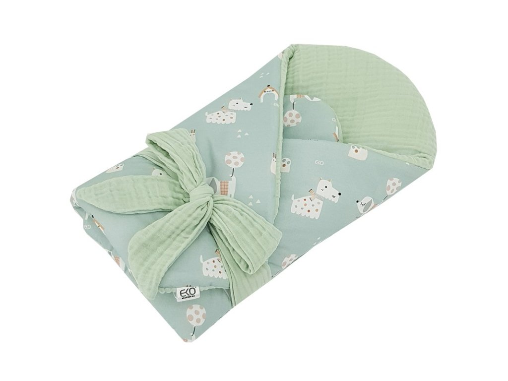 EKO Zavinovačka mušelínová s kokosovou vyberateľnou vložkou Dogs Muselin Mint 75x75 cm