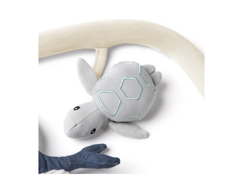 • traja roztomilí kamaráti, každý s vlastným zvukom - zazvoňte na zvonček korytnačky, zatraste hrkálkou veľryby alebo chytite hviezdicu, aby ste počuli vrásnenie