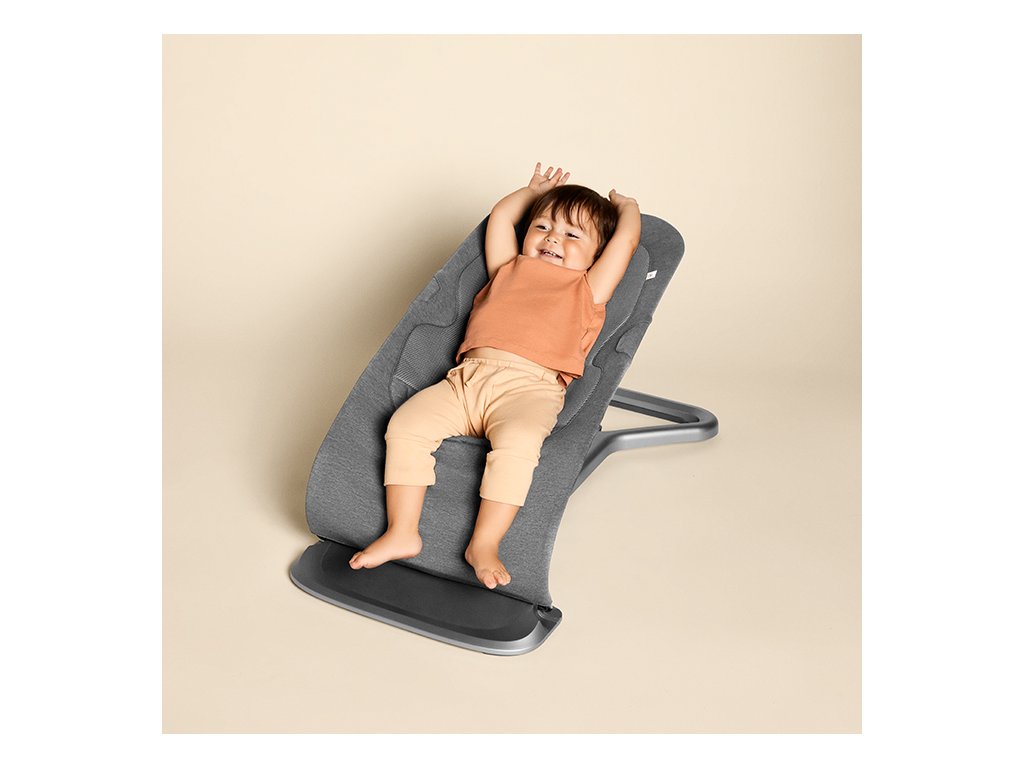 Ako dieťa rastie, Evolve hojdacie lehátko sa vybratím novorodeneckej vložky a výberom z troch výšok pre ramenné popruhy prispôsobí každej fáze jeho vývoja. Naša stredná poloha umožňuje dojčatám hojdať sa a relaxovať celé hodiny, zatiaľ najvyššia poloha je ideálna pre batoľatá, ktoré chcú všetko, čo sa okolo deje.