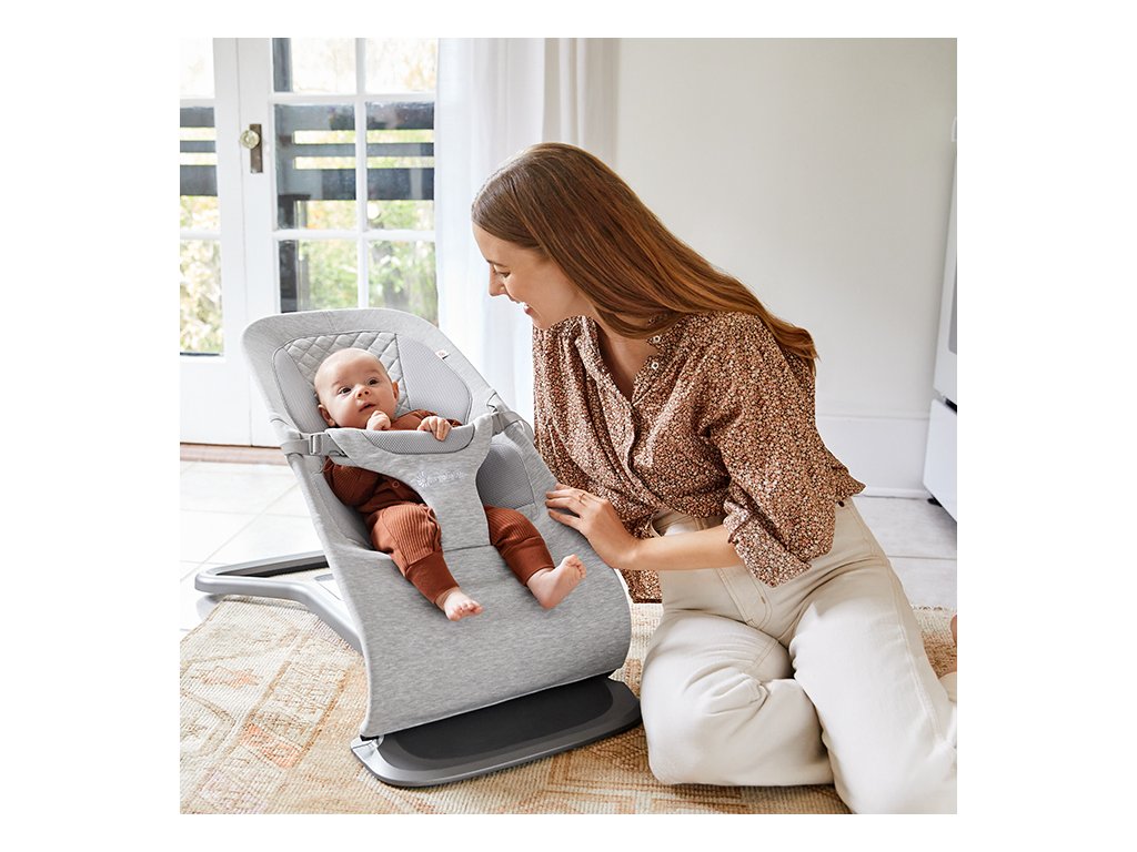 Ergobaby 3-v-1 Evolve Bouncer hojdacie lehátko rastie s Vaším dieťaťom od novorodenca cez dojčatá až po batoľa. Od prvého dňa narodenia zažije dieťa pohodlie od hlavy až po zadoček vďaka ergonomickej vložke vyvinutej pod vedením detského ortopéda.