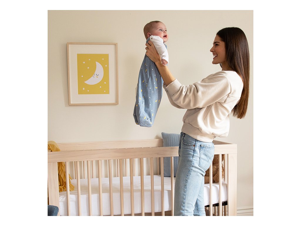 Dizajnový spací vak Ergobaby je veľmi ľahko použiteľný, rastie s Vaším dieťaťom 6 mesiacov a napomáha dobrému odpočinku.