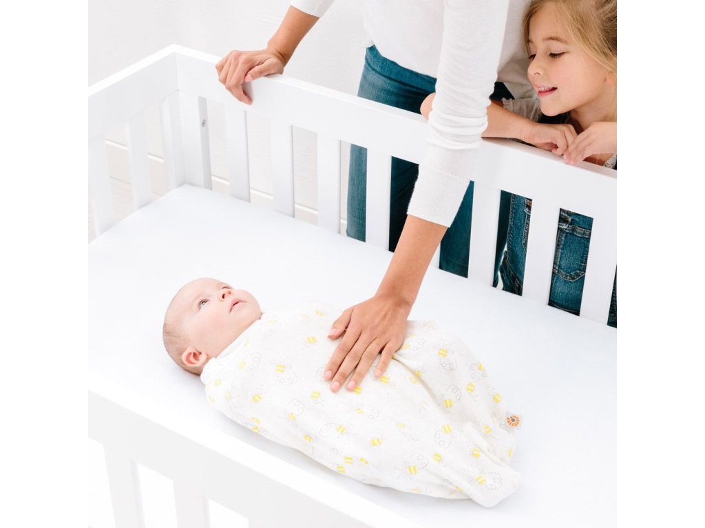 Prostredie zavinovačky poskytuje deťom tu správnu klímu, aby im nebolo chladno ani príliš horúco. Bábätká v zavinovačke môžu nosiť dupačky alebo len plienku. Zavinovanie pomáha Vášmu dieťaťu dlhšie a mierumilovne spať. Nové pridané vrecká na ručičky, zdravotný bedrový pás a tiež vak na nožičky poskytujú prístup na prebaľovanie.