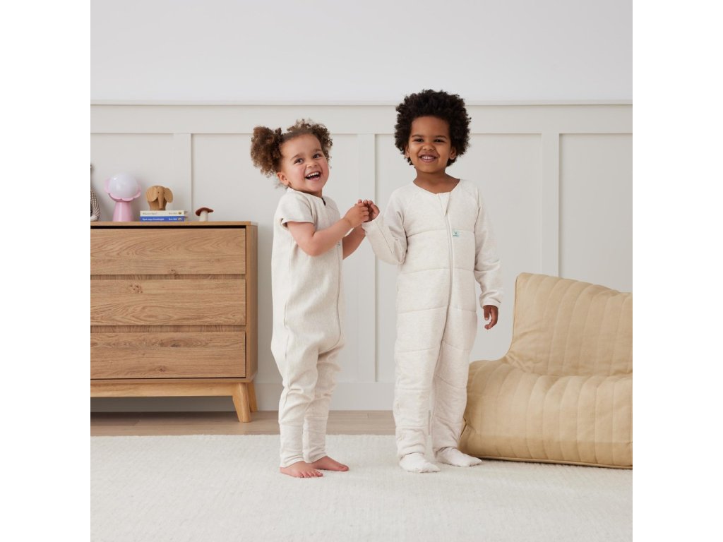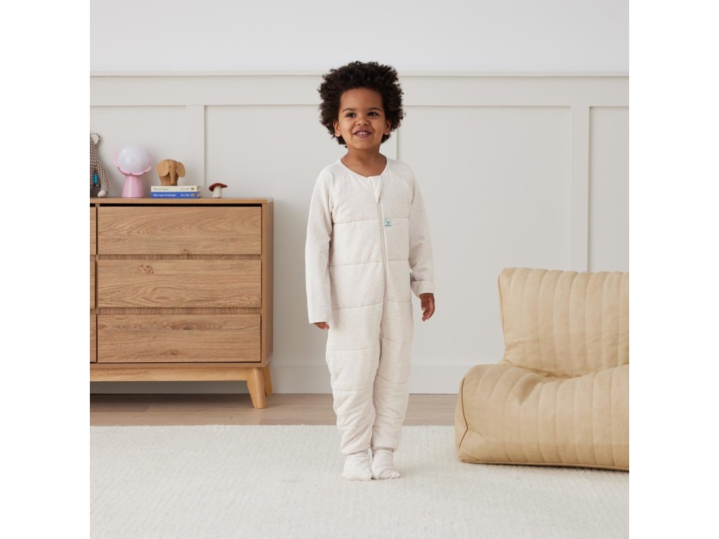 Overal Onesie je alternatívou spacieho vaku s označením TOG, ktorá je určená na nosenie samostatne počas spánku. Sú ideálnou voľbou pre batoľatá, ktoré prechádzajú do veľkej postele, spáčov, deti, ktoré odkopávajú prikrývky alebo malé hviezdičky, ktorým sa nepáči obmedzenie spacieho vaku. Spací vak je vyrobený z organickej bavlny s certifikátom GOTS, ktorá je netoxická a šetrná k podráždenej pokožke a je ňou aj vyplnený. Strečový materiál umožňuje vášmu dieťatku voľný pohyb a pohodlie pri spánku. Trojcestný potvrdzovací zips je užitočný pri nočných výmenách plienok alebo cestách na toaletu a manžety na nohy dodávajú extra teplo malým prstom.
