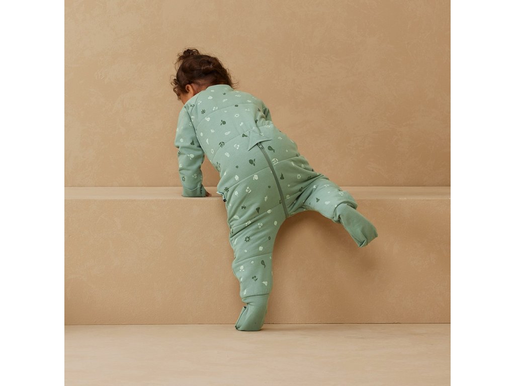 Overal Onesie je alternatívou spacieho vaku s označením TOG, ktorá je určená na nosenie samostatne počas spánku. Sú ideálnou voľbou pre batoľatá, ktoré prechádzajú do veľkej postele, spáčov, deti, ktoré odkopávajú prikrývky alebo malé hviezdičky, ktorým sa nepáči obmedzenie spacieho vaku. Spací vak je vyrobený z organickej bavlny s certifikátom GOTS, ktorá je netoxická a šetrná k podráždenej pokožke a je ňou aj vyplnený. Strečový materiál umožňuje vášmu dieťatku voľný pohyb a pohodlie pri spánku. Trojcestný potvrdzovací zips je užitočný pri nočných výmenách plienok alebo cestách na toaletu a manžety na nohy dodávajú extra teplo malým prstom.