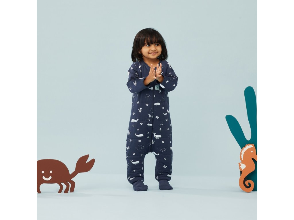 Overal Onesie je alternatívou spacieho vaku s označením TOG, ktorá je určená na nosenie samostatne počas spánku. Sú ideálnou voľbou pre batoľatá, ktoré prechádzajú do veľkej postele, spáčov, deti, ktoré odkopávajú prikrývky alebo malé hviezdičky, ktorým sa nepáči obmedzenie spacieho vaku. Spací vak je vyrobený z organickej bavlny s certifikátom GOTS, ktorá je netoxická a šetrná k podráždenej pokožke a je ňou aj vyplnený. Strečový materiál umožňuje vášmu dieťatku voľný pohyb a pohodlie pri spánku. Trojcestný potvrdzovací zips je užitočný pri nočných výmenách plienok alebo cestách na toaletu a manžety na nohy dodávajú extra teplo malým prstom.